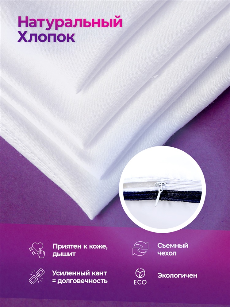Модель: Подушка для сна 50х70 см средняя жесткость, анатомическая, съемный чехол из хлопка