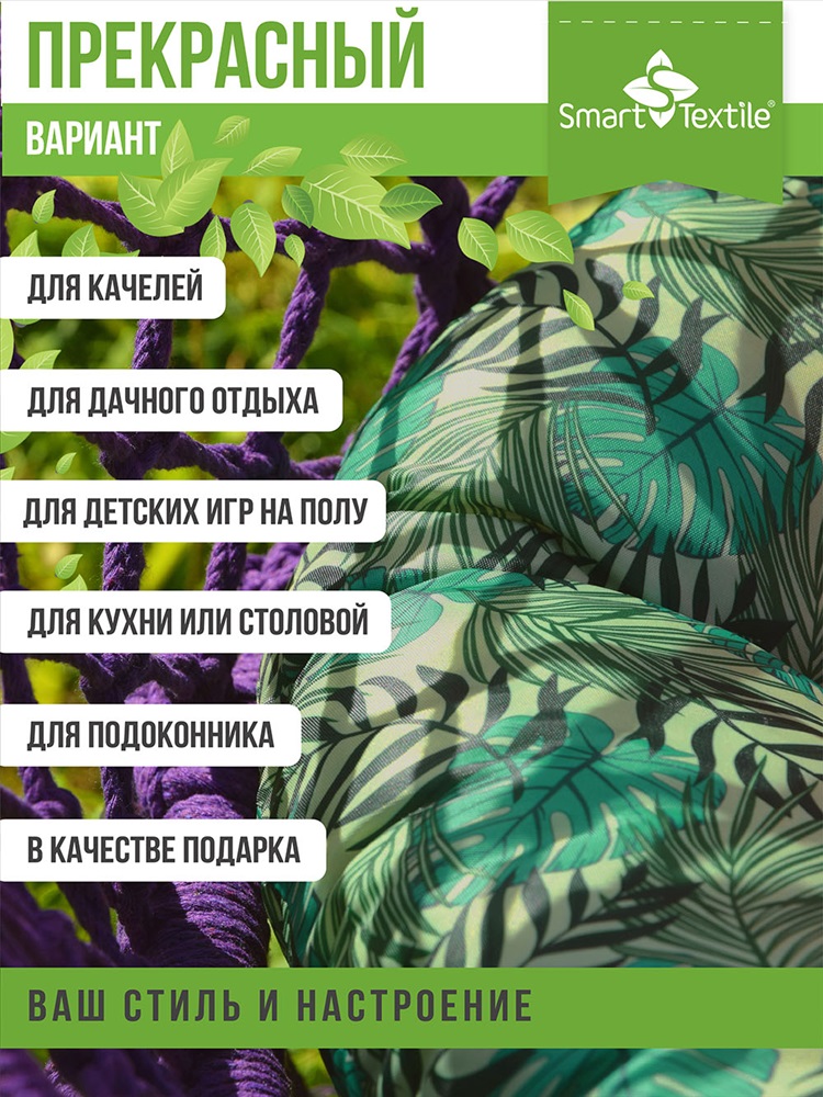 Сезонность: лето | осень | весна | зима Круглая подушка Орион Jungle диаметром 60 см это идеальное дополнение для вашего комфорта как в доме, так и на открытом воздухе. Благодаря своему стильному дизайну и функциональности, она станет незаменимым аксессуаром для садовых качелей и другой уличной мебели. Основные характеристики: Чехол: Изготовлен из прочной и износостойкой ткани оксфорд, которая легко чистится и долго сохраняет свои качества. Оксфорд обладает водоотталкивающими свойствами, что делает подушку устойчивой к загрязнениям и легкой в уходе. Наполнитель: Высококачественная поролоновая крошка, которая обеспечивает равномерное распределение веса и поддержку. Поролоновая крошка адаптируется под форму тела, создавая комфортное и анатомически правильное положение. Комфорт и вентиляция: Поролоновая крошка обладает хорошей воздухопроницаемостью, что предотвращает перегрев и обеспечивает свежесть на протяжении всего времени использования. Размер: Диаметр подушки 60 см, что делает ее универсальной и подходящей для различных целей от использования на садовых качелях до декорирования интерьера. Дизайн: Яркий и стильный принт Jungle придаст вашему пространству экзотическую нотку и создаст атмосферу уюта и гармонии. Круглая подушка Орион Jungle это забота о вашем комфорте и стиле, где бы вы ни находились!