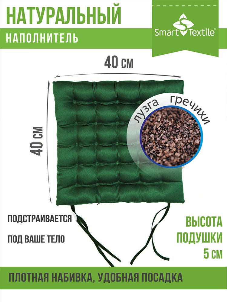Сезонность: лето | осень | весна | зима Благодаря форме пошива в виде объемных ячеек и уникальным природным свойствам наполнителя из лузги гречихи, сидеть на такой подушке удобно и полезно. С завязками для стула. Чехол: смесовая ткань. Наполнитель: лузга гречихи.