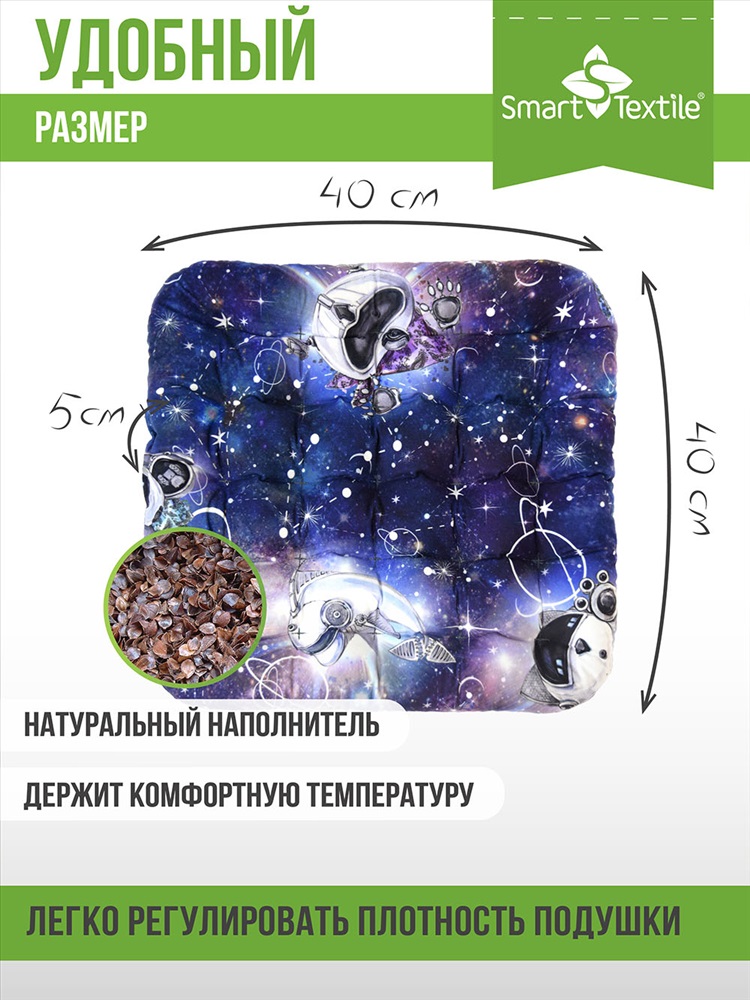 Сезонность: лето | осень | весна | зима Подушки на сиденье серии Сюжет с наполнителем из лепестков лузги гречихи предназначены для повышения комфорта при сидячей работе и предотвращения проблем, связанных с малоподвижным образом жизни. Наполнитель из лузги гречихи придает подушкам анатомические свойства, снижая нагрузку на мышцы, уменьшая давление и расслабляя позвоночник, а также улучшая кровообращение в органах малого таза. Сидушка-подушкасерии Сюжет подходит для всех домашних и школьных стульев. Благодаря объемным ячейкам и уникальным природным свойствам наполнителя из лузги гречихи, сидеть на такой подушке удобно и комфортно. Чехол подушки изготовлен из прочного и износостойкого материала, что обеспечивает долгий срок службы. С помощью застежки-молнии можно регулировать плотность подушки, отсыпав часть наполнителя.
