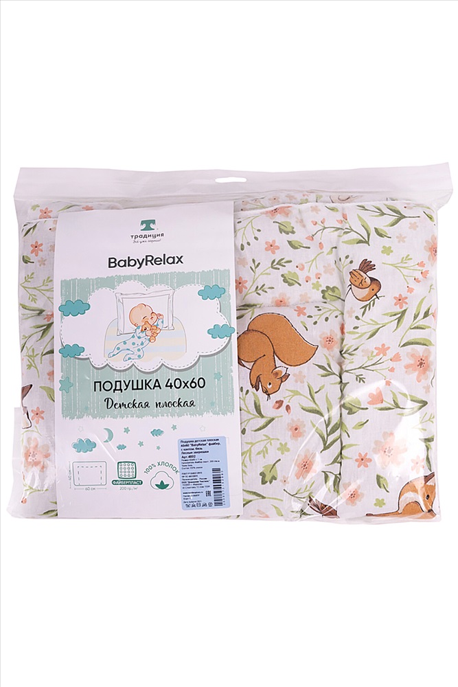 Подушка детская плоская 40x60 см BabyRelax для новорождённых, разработана с учетом анатомического строения ребенка до 1-го года. Тщательно подобранная толщина наполнителя обеспечивает правильное развитие шейного отдела позвоночника ребенка. Мягкий и легкий наполнитель - файберпласт, поддерживает оптимальную терморегуляцию, обладает высокой воздухопроницаемостью и препятствует накоплению влаги, а дышащая хлопковая ткань из бязи исключает перегрев ребенка во время сна. По периметру вшит кант, который выполняет функцию каркаса и препятствует перемещению наполнителя. Дополнительно, для фиксации наполнителя, изделие прошито по 3-м сторонам. Пошив в строгом соответствии с ГОСТ. Сон малыша с подушкой BabyRelax будет наполнен нежностью и уютом, а интересный дизайн ткани добавит позитивного настроения.