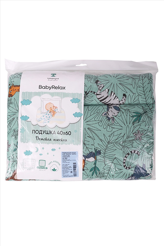 Подушка детская плоская 40x60 см BabyRelax для новорождённых, разработана с учетом анатомического строения ребенка до 1-го года. Тщательно подобранная толщина наполнителя обеспечивает правильное развитие шейного отдела позвоночника ребенка. Мягкий и легкий наполнитель - файберпласт, поддерживает оптимальную терморегуляцию, обладает высокой воздухопроницаемостью и препятствует накоплению влаги, а дышащая хлопковая ткань из бязи исключает перегрев ребенка во время сна. По периметру вшит кант, который выполняет функцию каркаса и препятствует перемещению наполнителя. Дополнительно, для фиксации наполнителя, изделие прошито по 3-м сторонам. Пошив в строгом соответствии с ГОСТ. Сон малыша с подушкой BabyRelax будет наполнен нежностью и уютом, а интересный дизайн ткани добавит позитивного настроения.