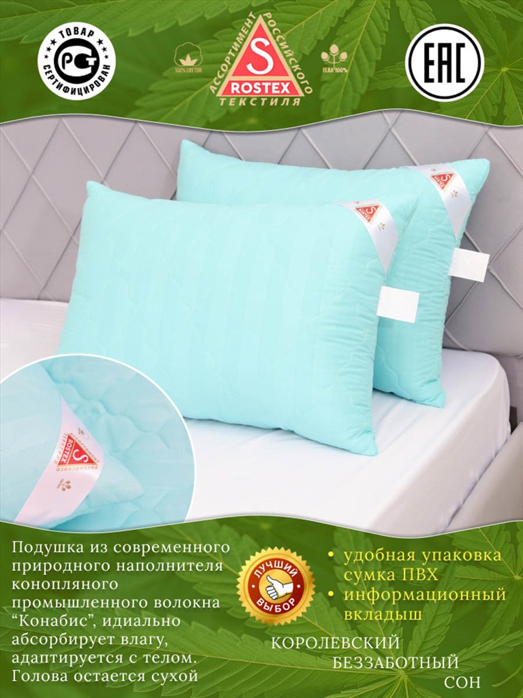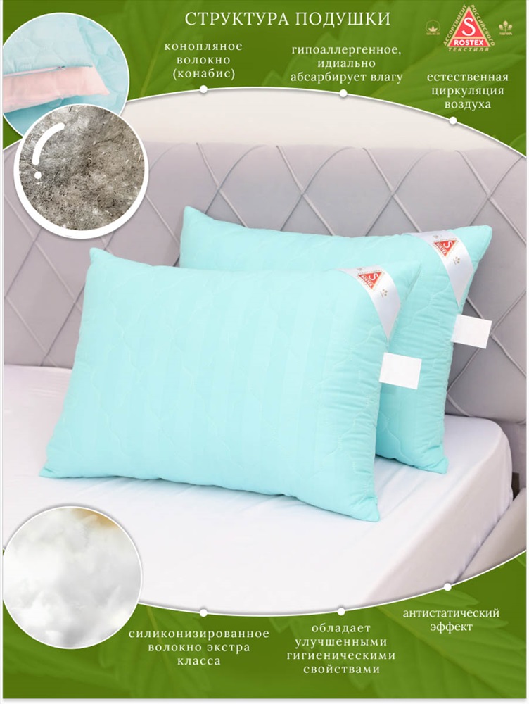 Модель: Подушка простёганная Конопляным волокном коллекция Здоровый сон