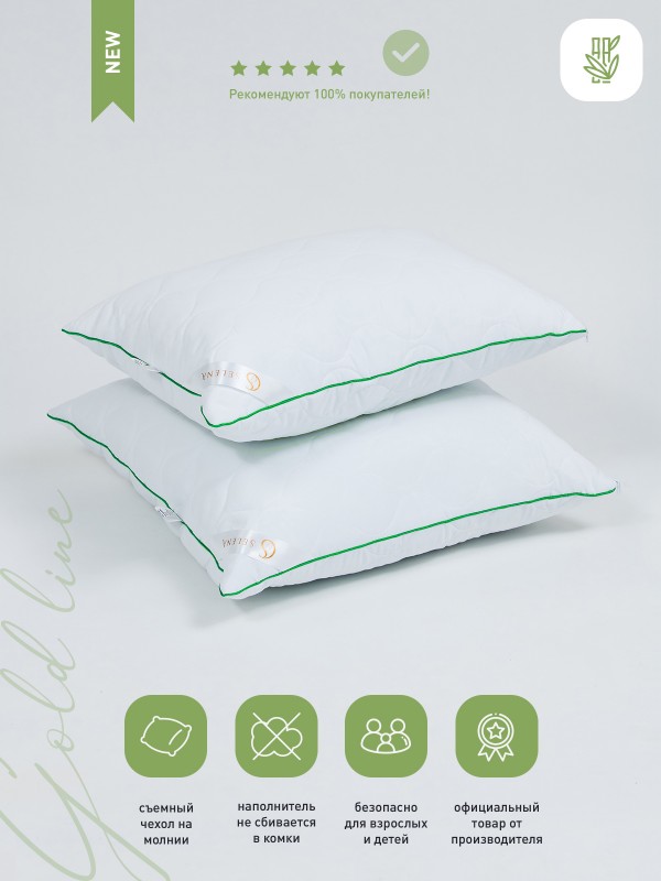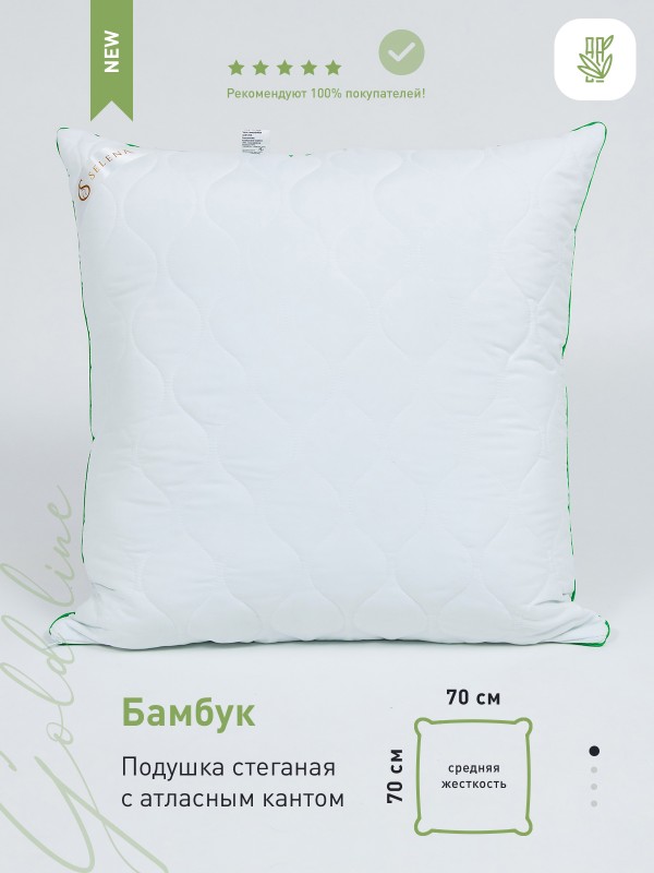 Серия подушек со съемным стеганым чехлом 'Gold line - это мягкий, стильный, невесомый текстиль для вашего дома. Подушка подходит для сна на спине, боку и животе. Съемный стеганный чехол подушки изготовлен из микрофибры, наполнитель из смеси бамбукового волокна и высокосиликонизированного полиэфирного микроволокна нового поколения, который удачно сочетает теплозащитные и вентилирующие свойства, влагоустойчив, экологически чист и препятствует возникновению бактерий. Чехол подушки съемный и подходит для деликатной стирки в стиральной машине при температуре не выше 30 градусах. Не отбеливать. Не гладить. Сушить при низких температурах. Подушка упакована в компактную сумку, исключающий повреждения при пересылке.