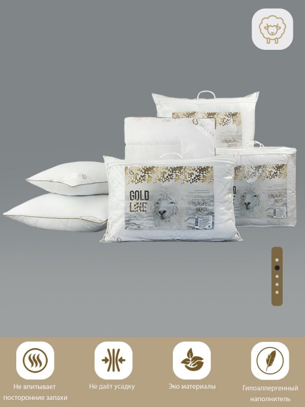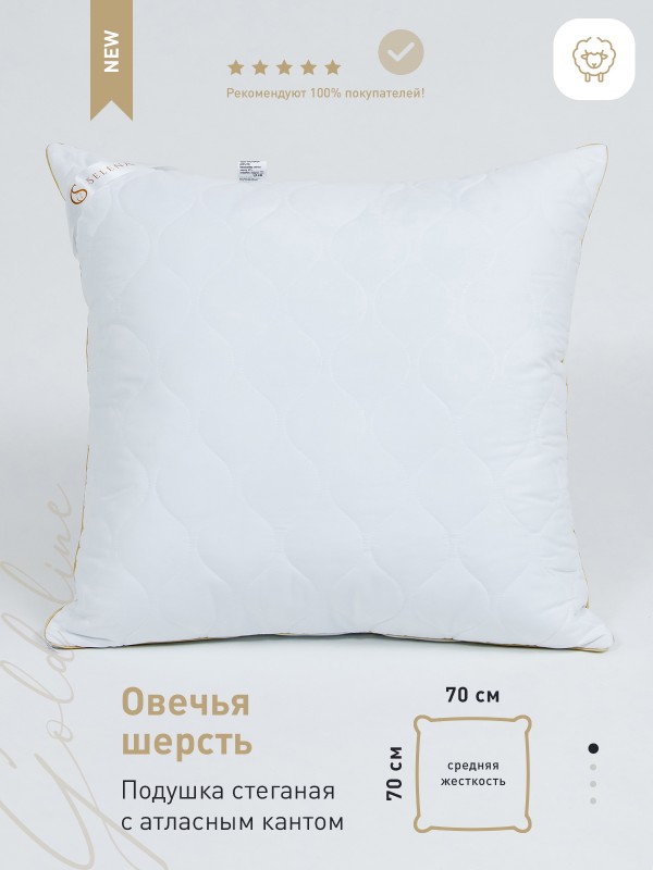 Серия подушек со съемным стеганым чехлом 'Gold line - это мягкий, стильный, невесомый текстиль для вашего дома. Подушка подходит для сна на спине, боку и животе. Съемный стеганный чехол подушки изготовлен из микрофибры, наполнитель из смеси овечей шерсти и высокосиликонизированного полиэфирного микроволокна нового поколения, который удачно сочетает теплозащитные и вентилирующие свойства, влагоустойчив, экологически чист и препятствует возникновению бактерий. Чехол подушки съемный и подходит для деликатной стирки в стиральной машине при температуре не выше 30 градусах. Не отбеливать. Не гладить. Сушить при низких температурах. Подушка упакована в компактную сумку, исключающий повреждения при пересылке.