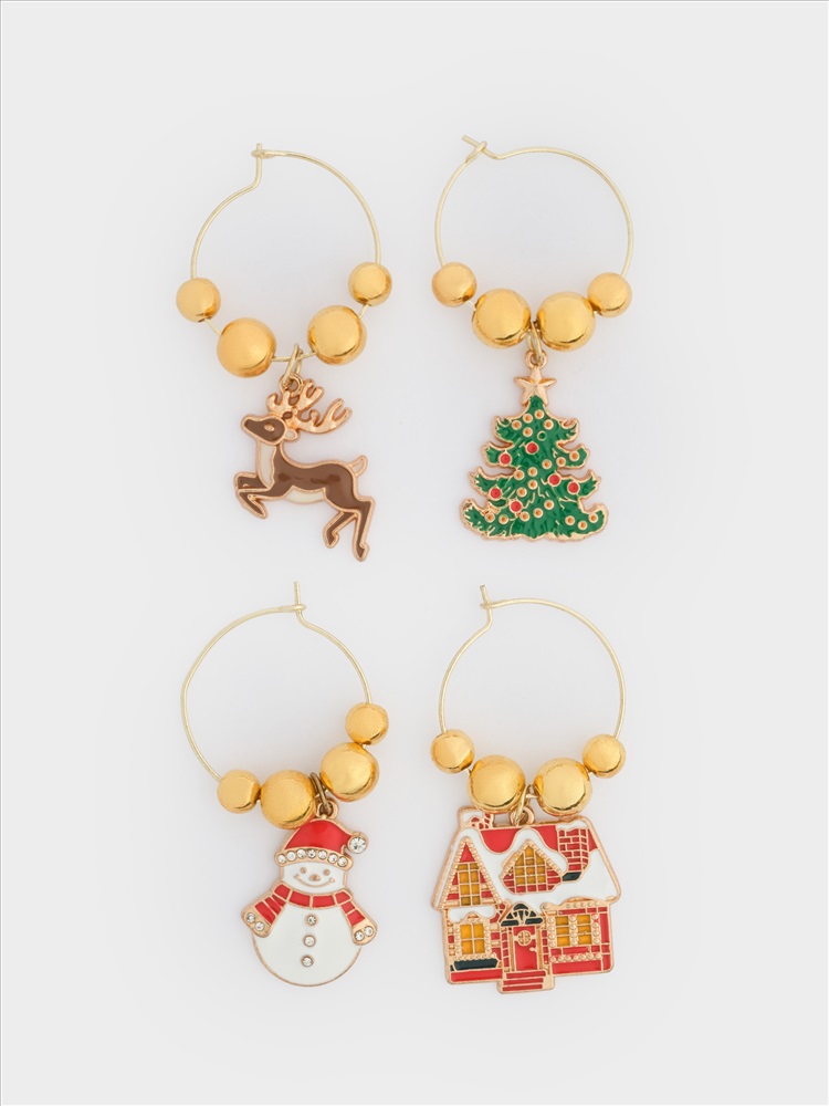 Подвеска для бокала, 4 шт. Размер: 3 см. Материал: цинковый сплав, металл, эмаль, стразы. Рекомендации по уходу: мыть вручную с применением мягких моющих средств. Не использовать для ухода абразивные чистящие средства и жесткие губки. Нельзя мыть в посудомоечной машине.