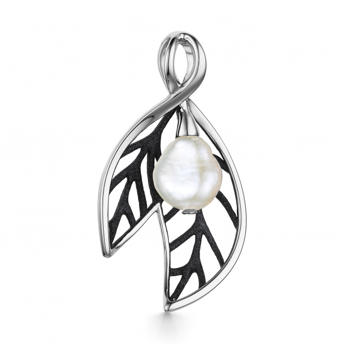 Металл: Серебро Вставка: жемчуг барокко культивированный Форма огранки жемчуга: Барокко Покрытие: Родий Цвет эмали: Черная Дополнительные вставки: Фианиты