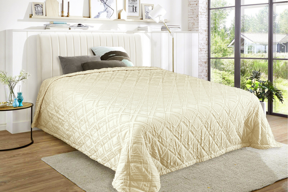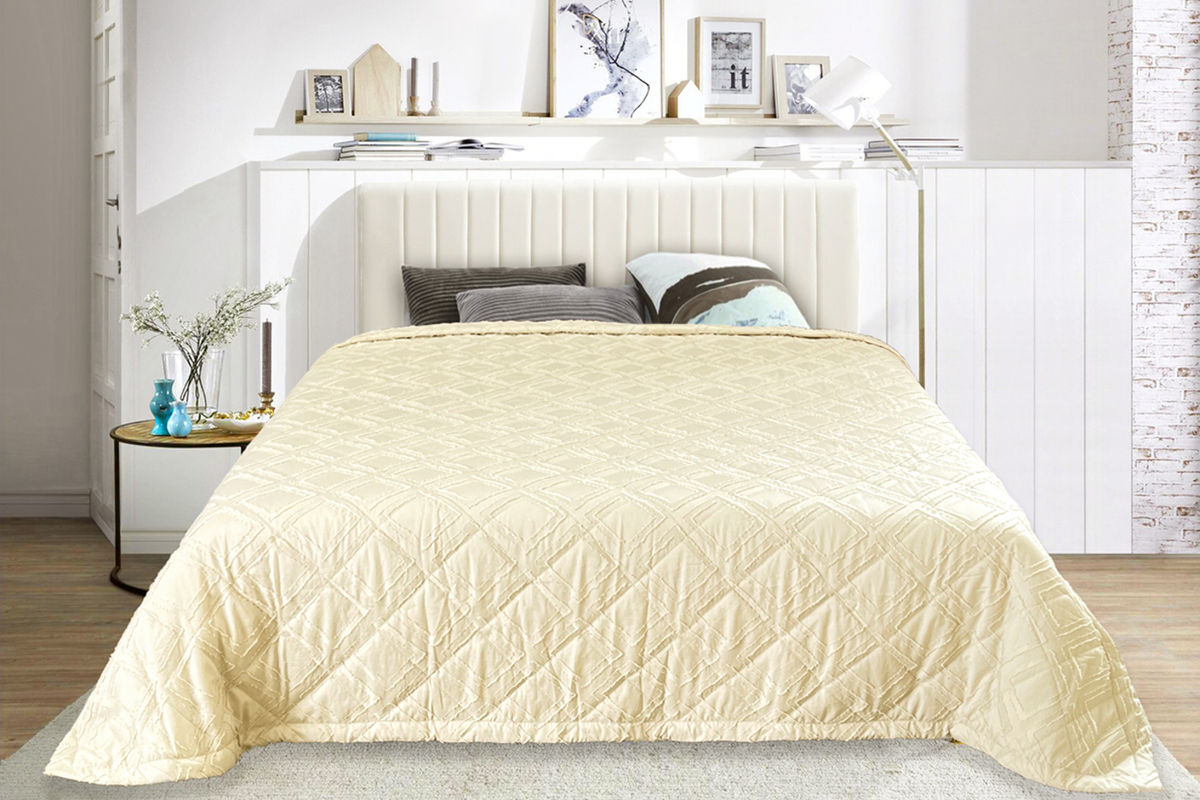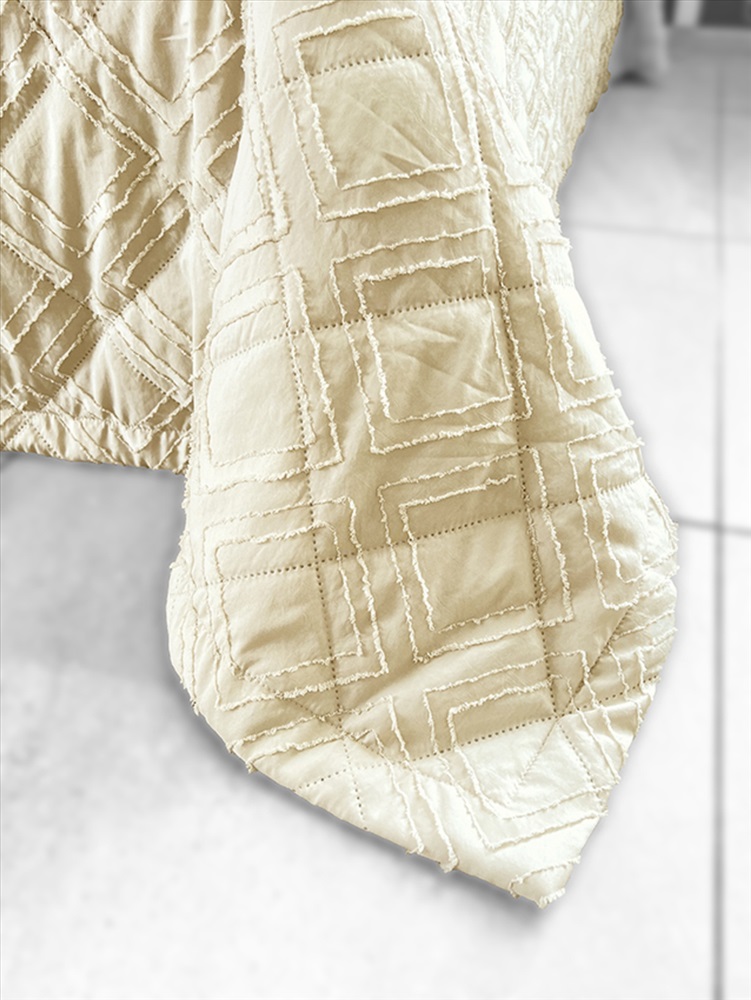 Состав: 100% пэ Модель: Покрывало ПСЖ-001 бежевый Тип товара: покрывало Материал: полисатин | ультрастеп | наполнитель синтепон | наполнитель синтепон | полисатин | ультрастеп Бренд: VV Viola Назначение: для спальни Рисунок: геометрия | клетка Сезонность: лето | осень | весна | зима Покрывало на кровать с декоративной отделкой - это не просто предмет декора, а настоящее произведение искусства, призванное украсить и сделать уютным любую спальню. Пышное и мягкое покрывало создаст атмосферу комфорта и уюта, придавая интерьеру особый шарм и шик. Верхняя часть покрывала выполнена из полисатина с жаккардовым декоративным элементом, нижняя часть покрывала из мытого полисатина, с прослойкой синтепона в средней части (технология ультрастеп). Таблица размеров и веса