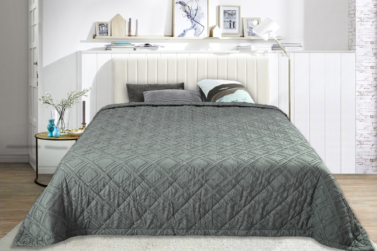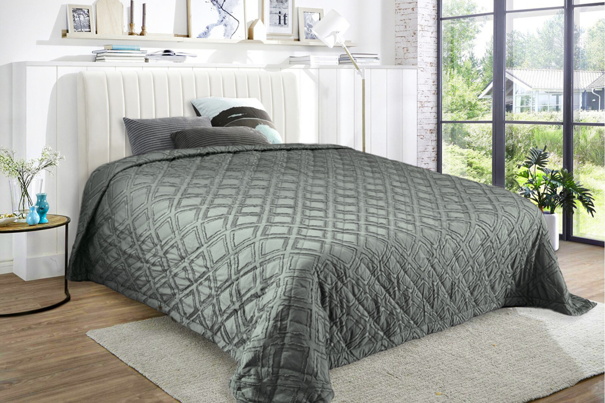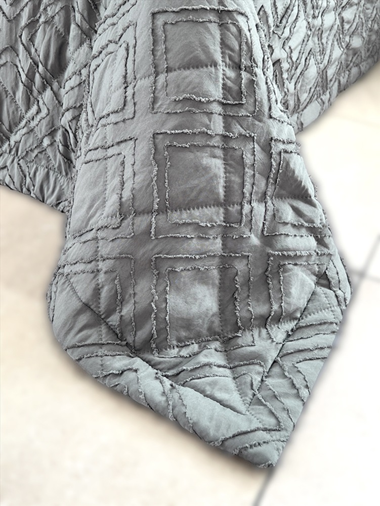 Состав: 100% пэ Модель: Покрывало ПСЖ-002 темно-серый Тип товара: покрывало Материал: полисатин | ультрастеп | наполнитель синтепон | наполнитель синтепон | полисатин | ультрастеп Бренд: VV Viola Назначение: для спальни Рисунок: геометрия | клетка | однотонные Сезонность: лето | осень | весна | зима Покрывало на кровать с декоративной отделкой - это не просто предмет декора, а настоящее произведение искусства, призванное украсить и сделать уютным любую спальню. Пышное и мягкое покрывало создаст атмосферу комфорта и уюта, придавая интерьеру особый шарм и шик. Верхняя часть покрывала выполнена из полисатина с жаккардовым декоративным элементом, нижняя часть покрывала из мытого полисатина, с прослойкой синтепона в средней части (технология ультрастеп). Таблица размеров и веса