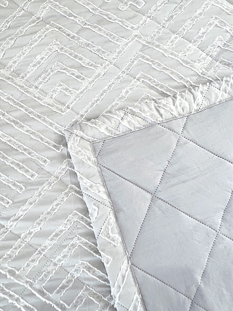 Состав: 100% пэ Модель: Покрывало ПСЖ-008 светло-серый Тип товара: покрывало Материал: полисатин | ультрастеп | наполнитель синтепон | наполнитель синтепон | полисатин | ультрастеп Бренд: VV Viola Назначение: для спальни Рисунок: геометрия Сезонность: лето | осень | весна | зима Покрывало на кровать с декоративной отделкой - это не просто предмет декора, а настоящее произведение искусства, призванное украсить и сделать уютным любую спальню. Пышное и мягкое покрывало создаст атмосферу комфорта и уюта, придавая интерьеру особый шарм и шик. Верхняя часть покрывала выполнена из полисатина с жаккардовым декоративным элементом, нижняя часть покрывала из мытого полисатина, с прослойкой синтепона в средней части (технология ультрастеп). Таблица размеров и веса