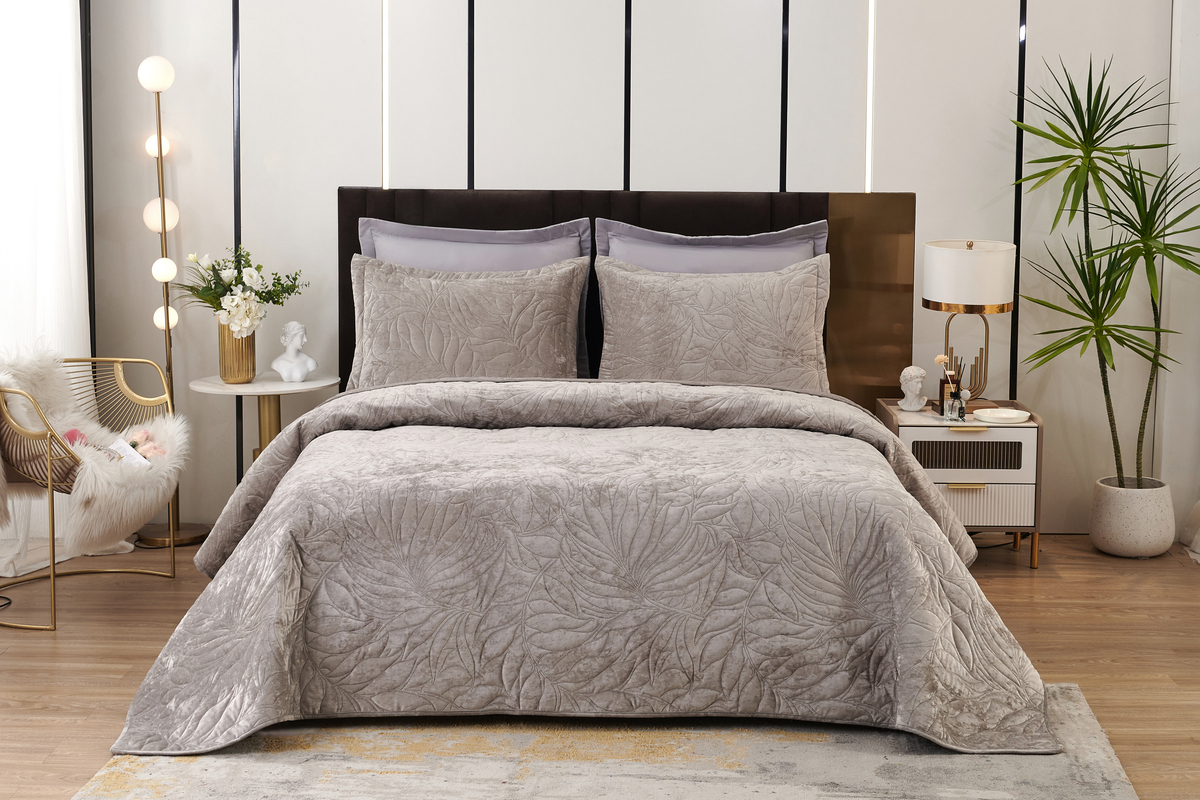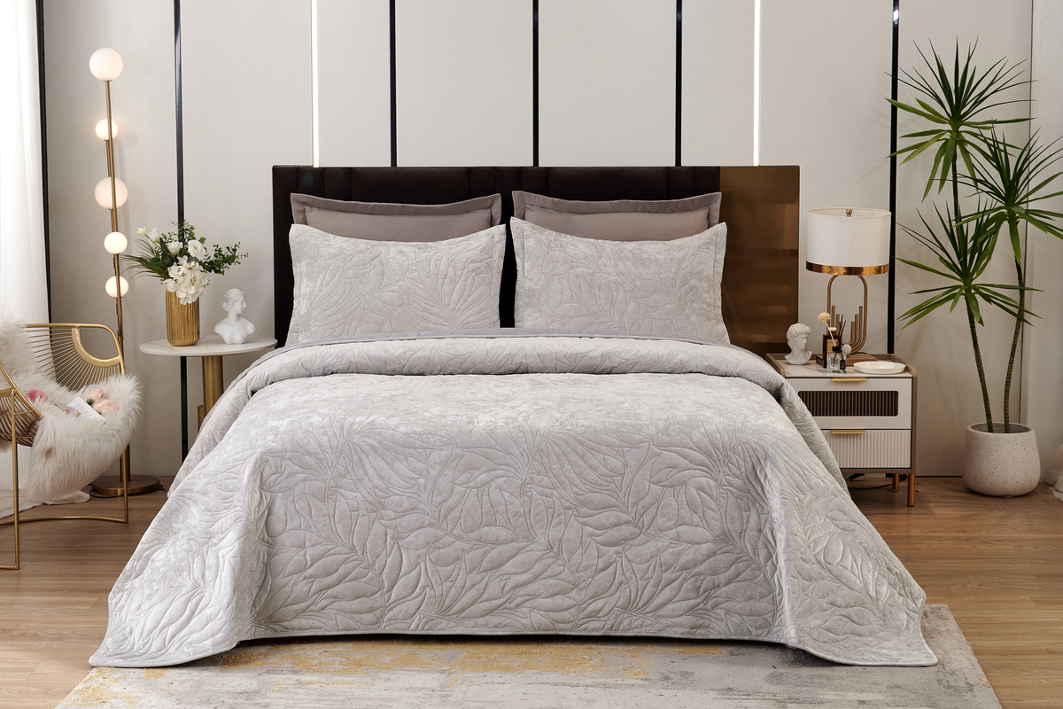 Сезонность: лето | осень | весна | зима Велюровое покрывало Роузмор это беспроигрышный вариант подарка на любой повод. Нет такого человека, который не хотел бы окружить себя комфортом и красотой. Безусловно шикарное с эстетической точки зрения покрывало Роузмор несомненно станет желанным элементом декора спальни. Крупный завораживающий узор летящих листьев придает покрывалу легкость и дарит ощущение свежести морского бриза. Бархатистая мягкость велюра погружает в бескрайнее море тактильного наслаждения. Материалы не только приятны визуально и тактильно, но и абсолютно безопасны, благодаря натуральному составу. Вискозное полотно обладает отличной гигроскопичностью и воздухопроницаемостью, что обеспечивает комфортное использования покрывала в любое время года. Покрывала Роузмор представлены в трех классических цветах: пепельная роза, крем, светло-серый.