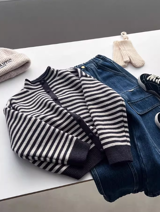 Полосатый кардиган для девочек. Тренд 2026