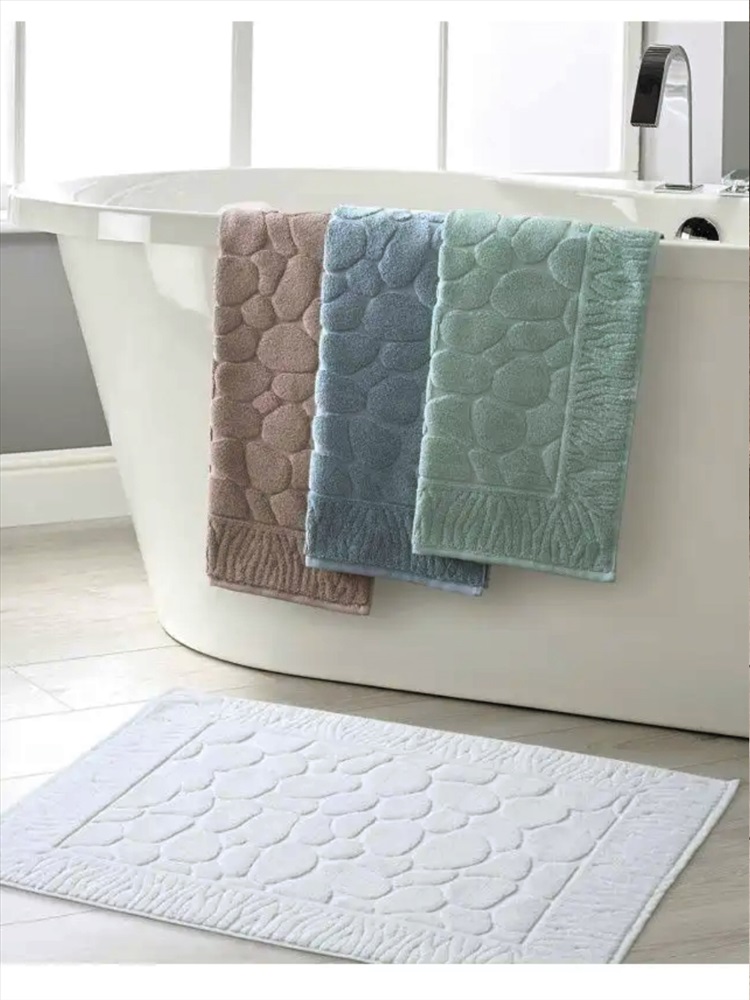 Сезонность: лето | осень | весна | зима Представляем вам идеальное полотенце для ног в ванную комнату размером 50х70 см. Это махровое полотенце, изготовленное из 100% натурального хлопка. Оно не только красиво украшено рельефным узором камешки, но и имеет приятный цвет. Но главное, что делает это полотенце особенным, это его мягкий ворс и высокая плотность, которые обеспечивают отличное впитывание влаги и быструю сушку. Вы можете использовать его как коврик для ванной или полотенце для пола, создавая комфорт и уют в вашей ванной комнате. Если вы ищете полотенце 40х70 см, то наше полотенце вам подойдет даже лучше! Кроме того, полотенце соответствует ГОСТу, а его плотность составляет не менее 650 г/м2. Ваши ножки будут счастливы с таким удобным и качественным полотенцем. Произведено в Узбекистане.