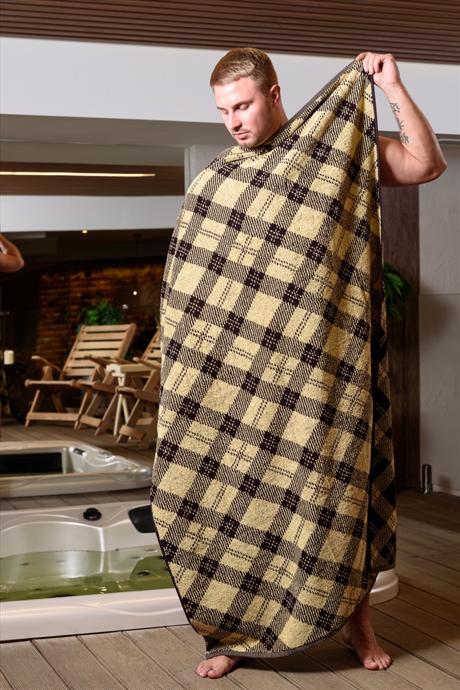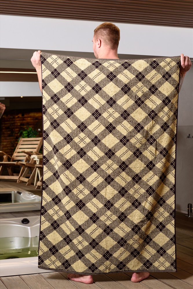 Полотенце банное махровое 100х150 см пестротканное женское, мужское, детское в крупную шотландскую клетку. Коллекция домашнего текстиля с геометрией в дизайне тренд 2025 года. В составе полотенца - 100% хлопок, плотность - 420 г/м2. Мягкая текстура 2-х сторонней махры обеспечивает приятные ощущения после водных процедур. Подходит для лица, волос, тела, рук, ног. Применяется для ухода за собой и косметических beauty процедур дома в ванной, в бане, сауне, хаммаме, бассейне, джакузи, spa-центрах, массажных салонах, гостиницах, отелях и хостелах. Идеально для занятий спортом, фитнесом, йогой, туризмом. Можно постелить на лежак, шезлонг, использовать как покрывало, плед или махровую простыню, взять с собой в командировку или в роддом. Большой размер позволяет использовать полотенце как пляжное, спортивное, а также как банный килт или парео вместо банного халата, домашней одежды. Отлично впитывает влагу, жидкость, быстро сохнет, не деформируется, выдерживает частые стирки, не требует глажки и особого хранения. Отсутствие синтетических волокон делает изделие гипоаллергенным и подходящим для чувствительной кожи, в том числе для детей. Хорошо упаковано в плотный прозрачный зип пакет.