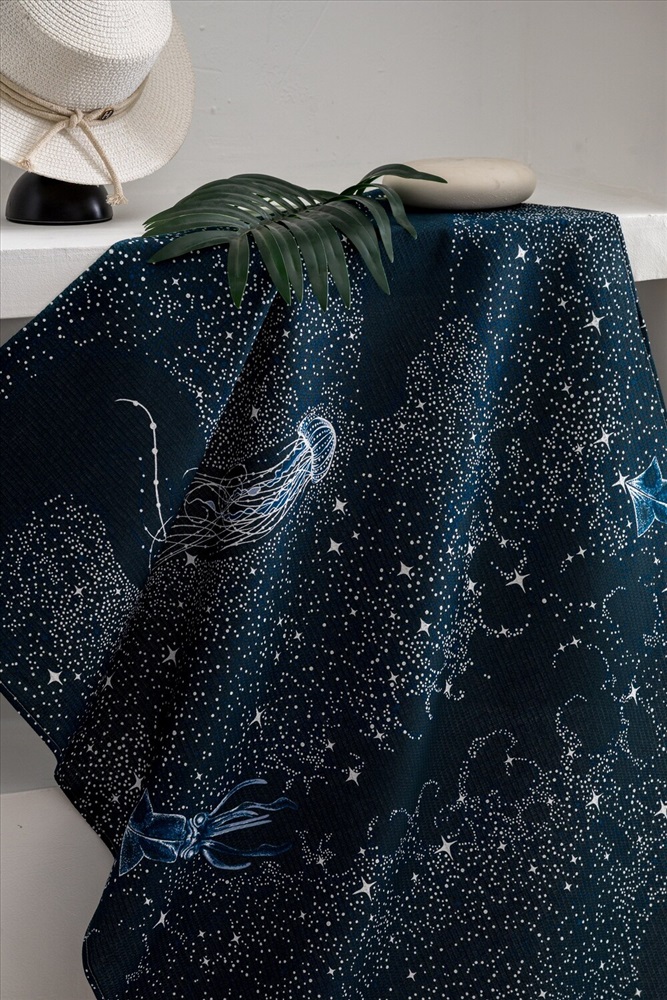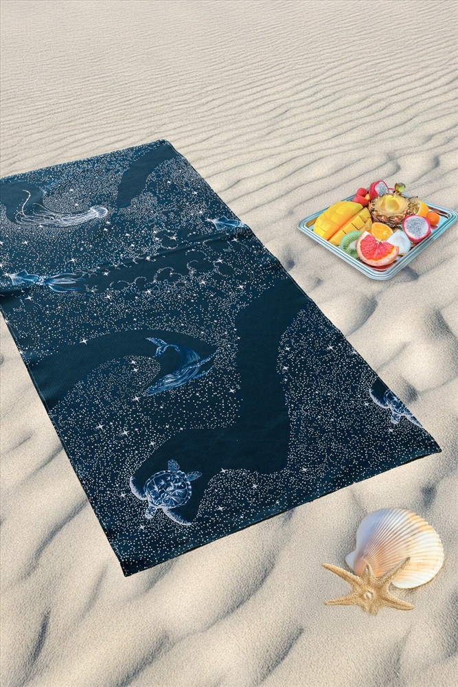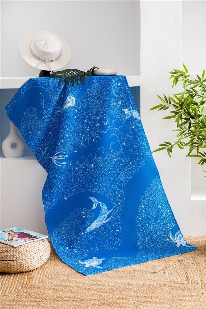 Сезонность: лето | осень | весна | зима Полотенце пляжное Тайны океана - это идеальный выбор для вашего отпуска на море или отдыха на даче. Это большое пляжное полотенце из 100% хлопка имеет размер 150*80 см, что делает его идеальным для комфортного отдыха на пляже. Полотенце представлено в двух цветах - синем и темно-синем, с узорами китов, медуз, черепах и звезд. Эти морские мотивы придают полотенцу особый шарм и делают его отличным подарком для любителей моря и пляжа. Изготовлено из вафельного полотна, это полотенце компактное, быстро сохнет и отлично впитывает влагу. Вы будете приятно удивлены, насколько легким и удобным оно оказывается в использовании. Не упустите возможность добавить в свой пляжный арсенал это удивительное полотенце Тайны океана. Позвольте себе насладиться отдыхом на пляже с максимальным комфортом и стилем.
