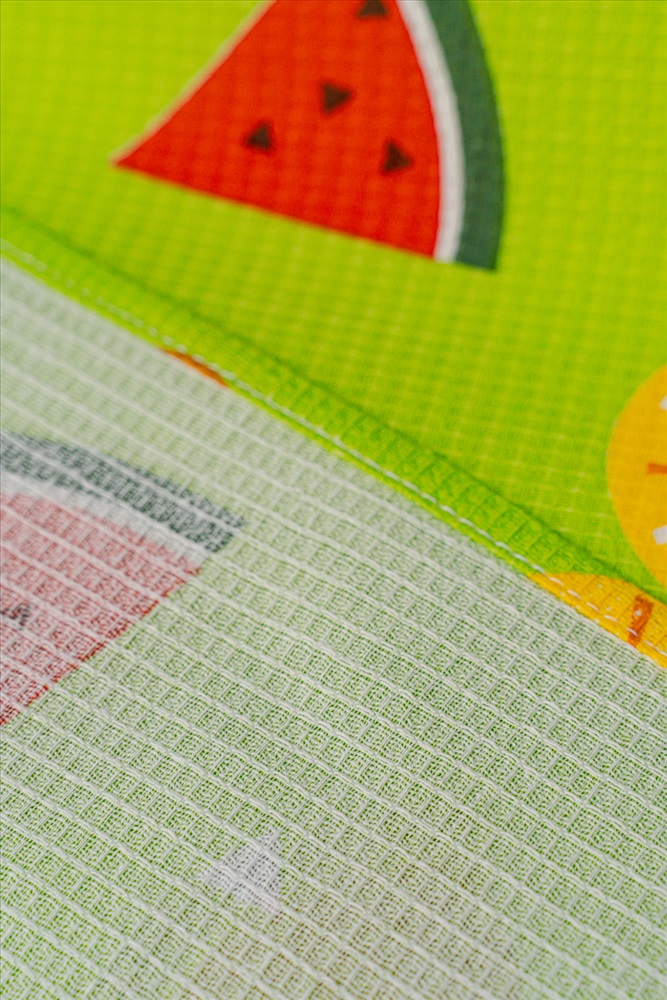 Сезонность: лето | осень | весна | зима Большое вафельное полотенце Тутти-Фрутти идеально подойдет для отпуска и отдыха на пляже. Размер полотенца 150*80, при этом оно тонкое и компактное, не занимает много места в сумке. Изделие хорошо впитывает влагу и быстро сохнет. Мягкое вафельное полотенце так же подойдет для бани и сауны. Для удобства использования к полотенцу пришита петелька.