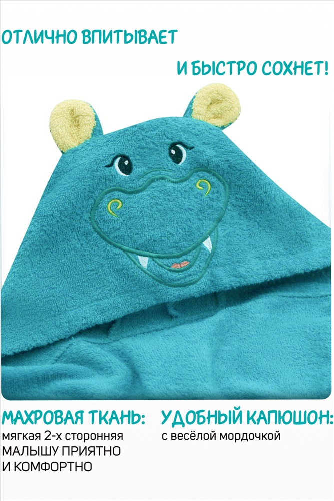 Состав: хлопок 100% Модель: Полотенце-уголок махровый Звери 75*120 Тип товара: полотенце Материал: махра | махра Бренд: Доброе утро Назначение: для ванной НДС: 22% Особенности: полотенце с уголком Отделка: с вышивкой Рисунок: зверюшки Сезонность: лето | осень | весна | зима Милое детское махровое полотенце изготовлено из мягкого хлопка, который подходит для новорожденных, не вызывает аллергии и отлично впитывает влагу. Уголок с ушками это идеальный вариант для ухода за младенцем. Гипоаллергенный материал с натуральным хлопком в составе быстро сохнет и не вызывает раздражения чувствительной кожи лица и тела. Полотенце с капюшоном большого размера в форме прямоугольника 75х120 см для детей с рождения до 5-6 лет позволяет укутать малыша полностью с макушки до пяточек. Текстильное изделие имеет капюшон, украшенный декоративной вышивкой. Удобный несъемный капюшон с забавной мордочкой держит тепло и помогает быстро высушить волосы. Этот банный аксессуар с оригинальным дизайном понравится всем членам семьи! С ярким смешным полотенцем с мордочкой животных кроха будет с удовольствием умываться и мыть руки самостоятельно. Его можно использовать каждый день как большое полотенце для купания в ванной и душевой кабине или для спортивных занятий по плаванию в бассейне. Подходит как крестильное полотенце, уголок сыну и дочери, любимому крестнику. Применяется как детский плед, хлопковое покрывало в кроватку и коляску, накидка для пляжа от солнечный лучей. Универсальное быстросохнущее полотенце-уголок понравится детям, подросткам и девушкам. Подойдет для ног, его можно повязать в виде тюрбана чалмы после мытья головы и душа дома или в бане. Полотенце для мальчика и девочки подходит всем, кто подбирает товары для новорожденных, памятный подарок молодой будущей маме, молодым родителям на рождение дочки и сыночка, на годик, крестины малыша, девочке на 8 марта, мальчику на 23 февраля, на именины, новоселье, подруге, сестре, внуку, внучке. Это многофункциональный предмет и незаменимый помощник для мамочек и детей для повседневного пользования. Красивый подарок на выписку из роддома для грудничка. Упаковка товара плотная прозрачная сумка с ручками. Производитель ткани для уголков - фабрика Донецкая Мануфактура. Таблица размеров и веса