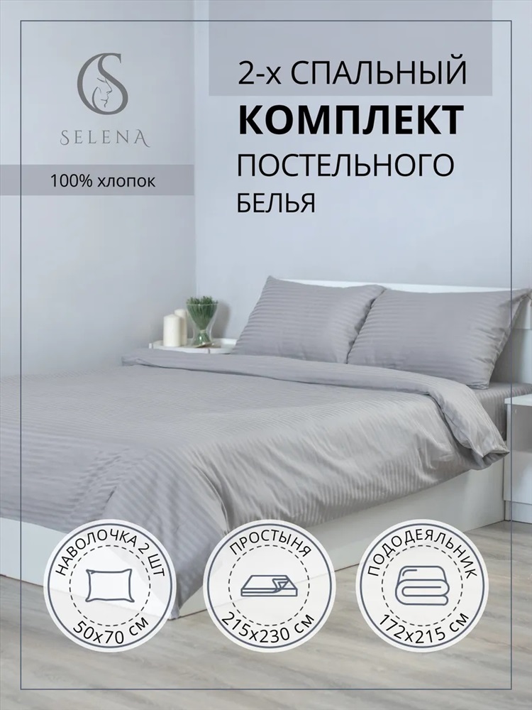 ОписаниеКомплект постельного белья ТМ Selena из страйп-сатина отличается приятным и сдержанным дизайном, особой мягкостью, прочностью и длительным сроком службы. Натуральный 100% хлопок в составе страйп-сатина делает его гипоаллергенным. Благодаря особой выработке такое постельное белье смотрится строго, дорого и эффектно, поэтому его так любят не только хозяйки, но и специалисты сферы гостиничного бизнеса. Пододеяльник 172х215 см - 1 шт, простыня 215х230 см - 1 шт, наволочки 50х70 - 2шт Комментарии к товару