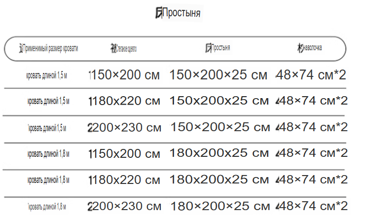 Размер пододеяльника: 150*200 см (1,5), 180*220см (1,8), 200*230см (2,0), 180*220см (1,5), 200*230 см (1,5), 200*230см (1,8)