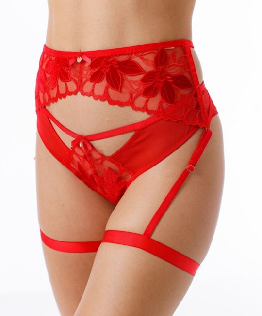 Состав: 85% ПОЛИАМИД/ 15% ЭЛАСТАН Пояс для чулок ,выполнен из эластичной сетки с вышивкой и декоративными цветами из флока. Украшение: медальон с логотипом COQUETTE REVUE.