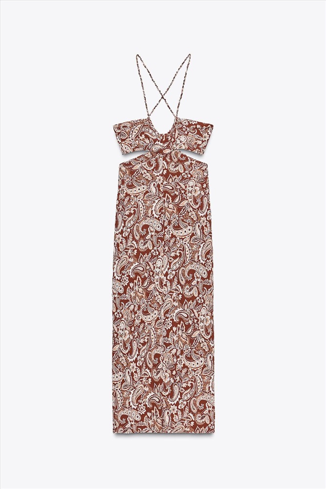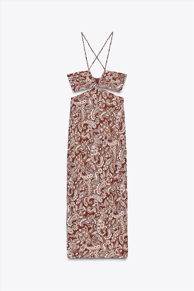 Fitted dress with a V-neck and thin braided straps. Featuring cut-out detail at the sides of the waist, a hem with a vent at the back and a concealed in-seam zip fastening at the back. COMPOSITION, CARE & ORIGIN COMPOSITION OUTER SHELL 70% viscose CARE Caring for your garments to extend their useful life. Lower temperature washes and delicate spin cycles are gentler on garments and help to protect the colour, shape and structure of the fabric.