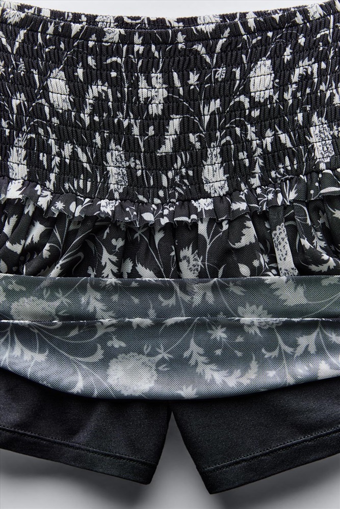 Bermuda skort with an elastic waistband and a ruffled hem. COMPOSITION, CARE & ORIGIN COMPOSITION OUTER SHELL 94% polyester LINING 100% viscose Which contains at least: OUTER SHELL 94% RCS certified recycled polyester 6% RCS certified recycled elastane CERTIFIED MATERIALS RCS CERTIFIED RECYCLED POLYESTER Nowadays, recycled polyester is mainly made from PET plastic waste. This is a type of plastic that is widely used in a variety of items, such as plastic bottles. Using recycled materials helps limit the production of virgin polyester fibre. It is certified to the Recycled Claim Standard (RCS), which verifies the recycled content and tracks it from source to final product. Certified by Intertek 193341 More information RCS CERTIFIED RECYCLED ELASTANE This material is made from recycling waste generated during the manufacturing process of this material. Transforming waste into new materials helps limit the extraction of raw materials. It is certified to the Recycled Claim Standard (RCS), which verifies the recycled content and tracks it from source to final product. Certified by Intertek 193341 More information CARE Caring for your clothes is caring for the environment. Lower temperature washes and delicate spin cycles are gentler on garments and help to protect the colour, shape and structure of the fabric. Furthermore, they reduce the amount of energy used in care processes.