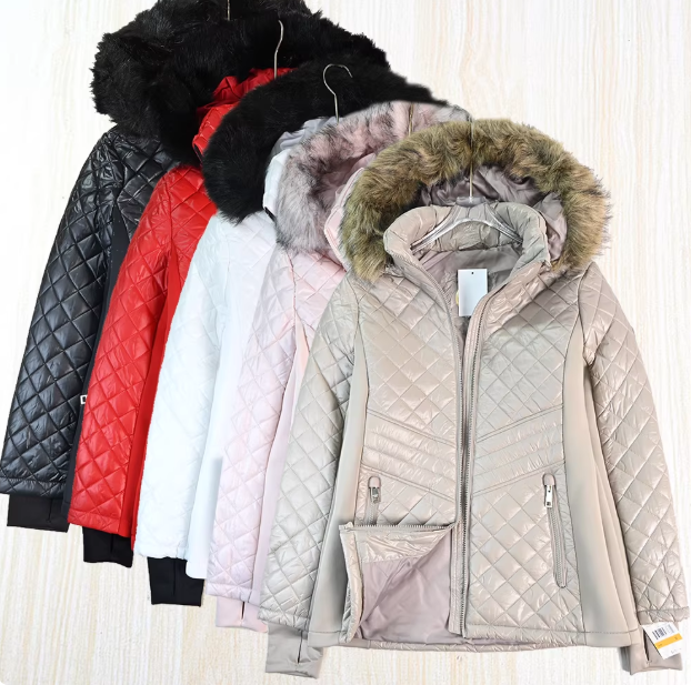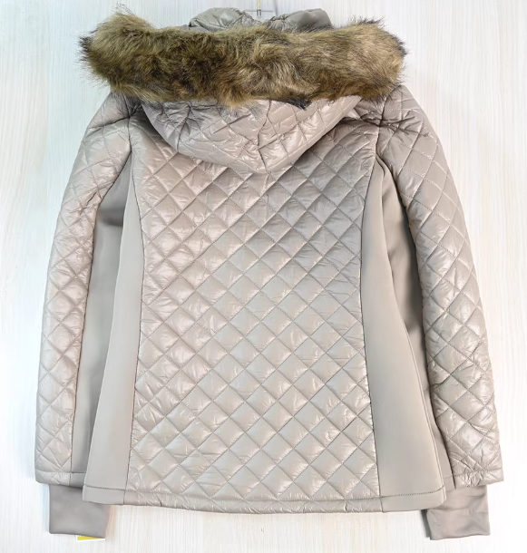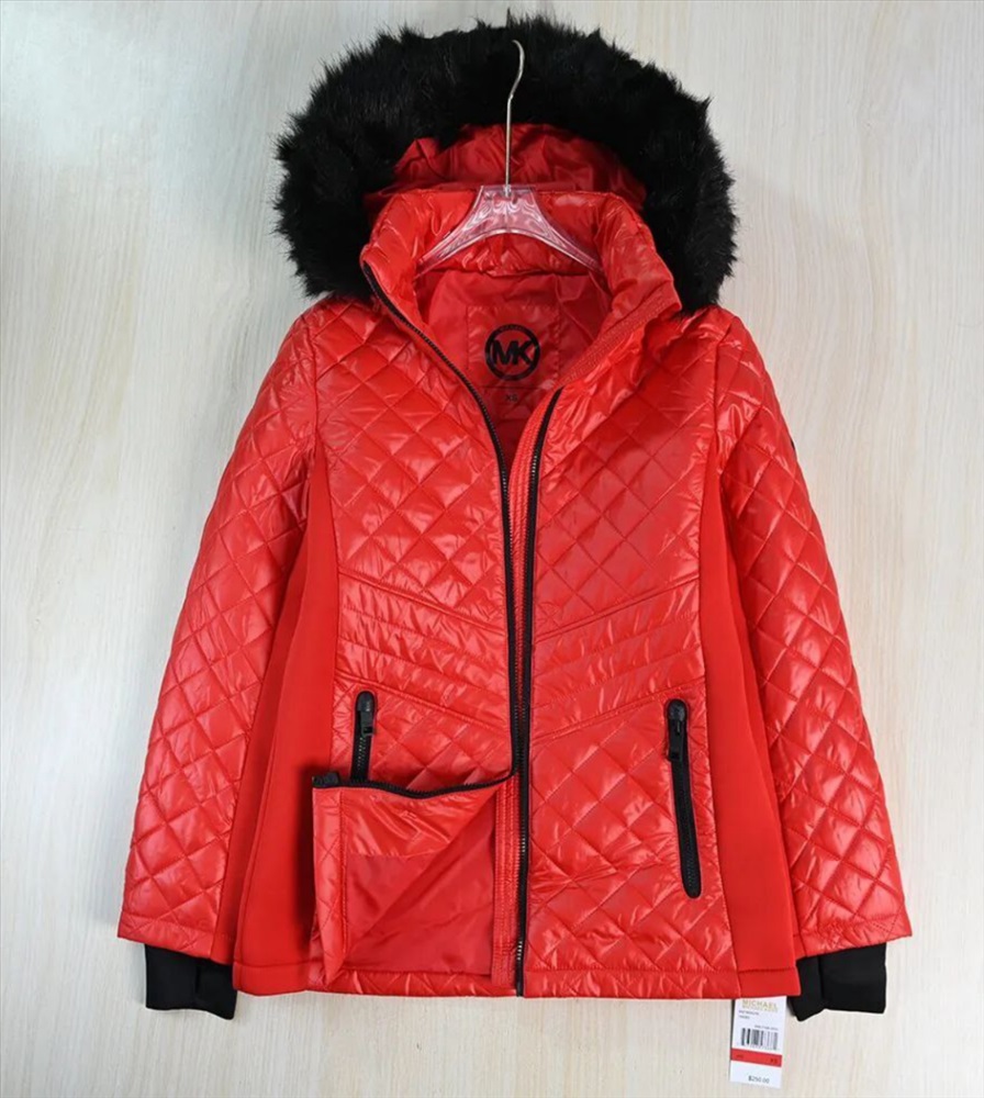 ткань 1; Полиэстер ткань 2; 91 полиэстер 9 спандекс Подкладка полиэстером Наполнена полиэстером Воротник из искусственного меха В наличии: Розовый S, XL Красный XS-XL Черный XS-XL