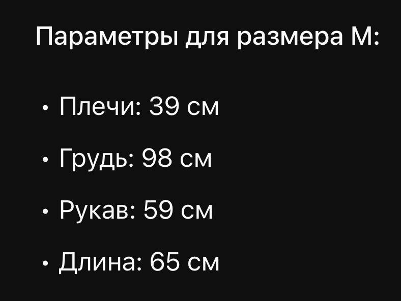 Размеры: S M L (замеры даны только для М) Комментарии к товару