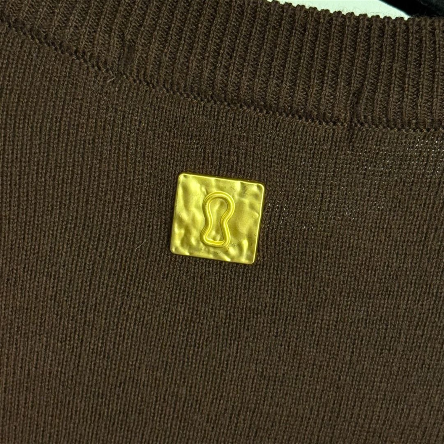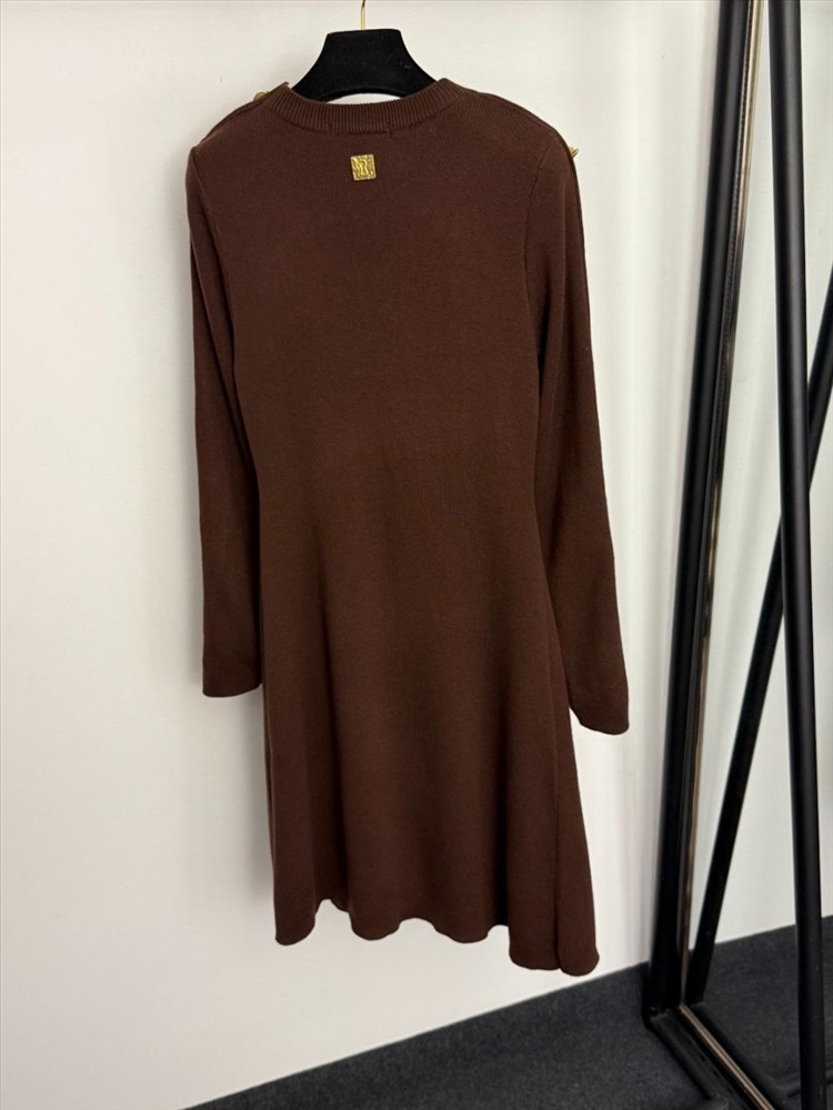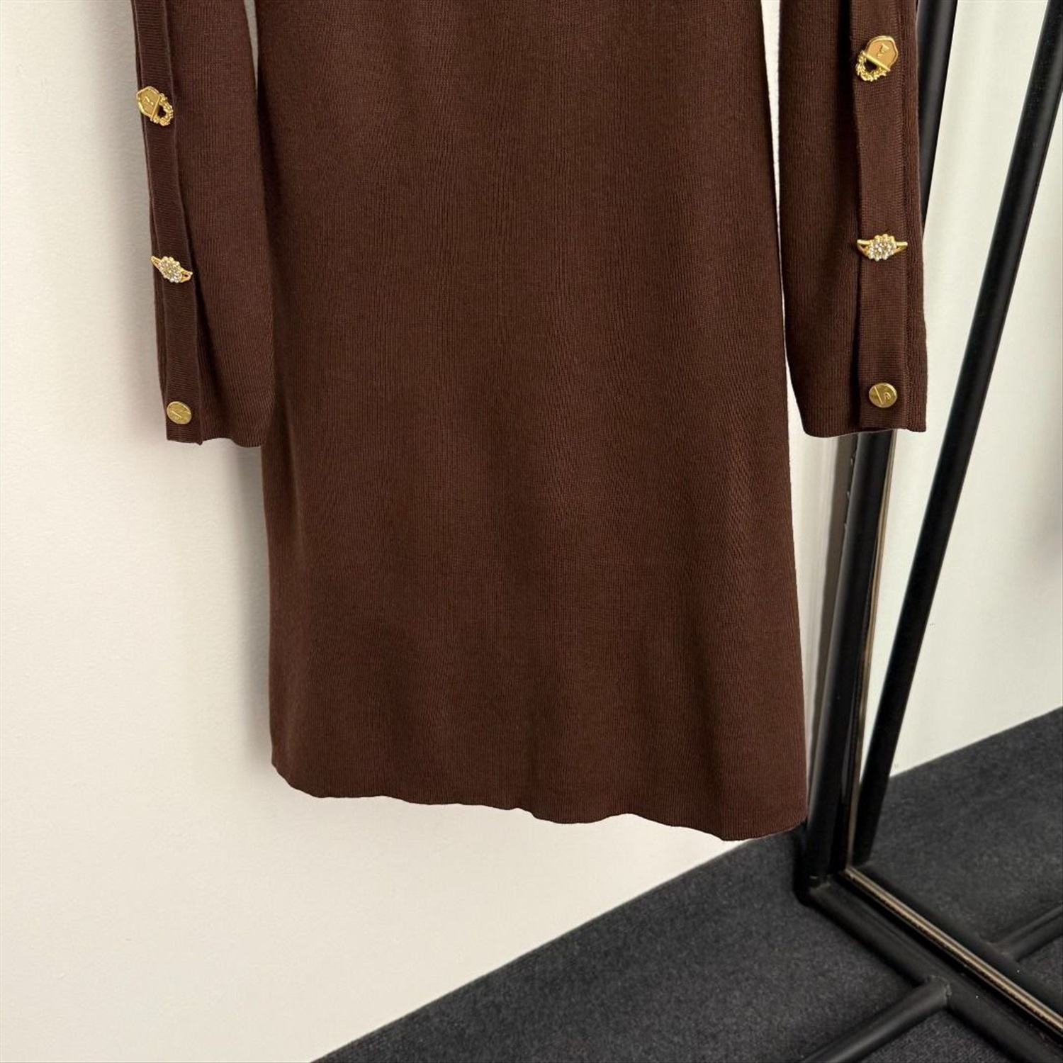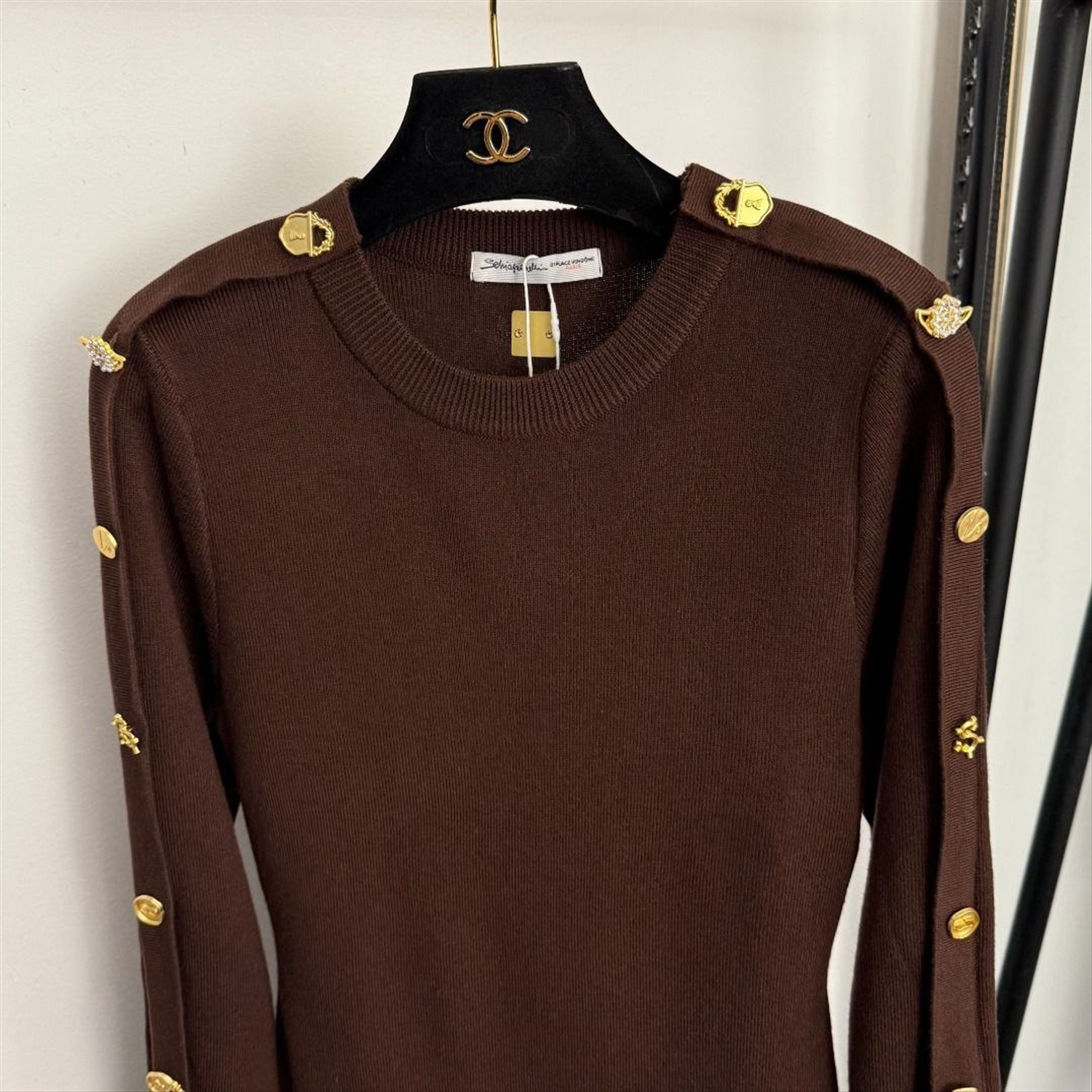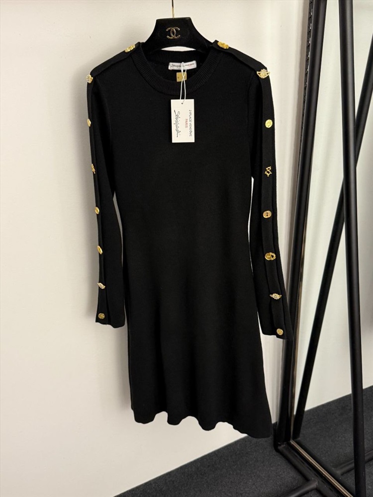 Прямое трикотажное платье с декоративными золотыми пуговицами особой формы с длинными рукавами Schiaparell*i