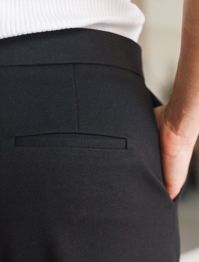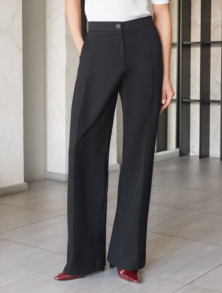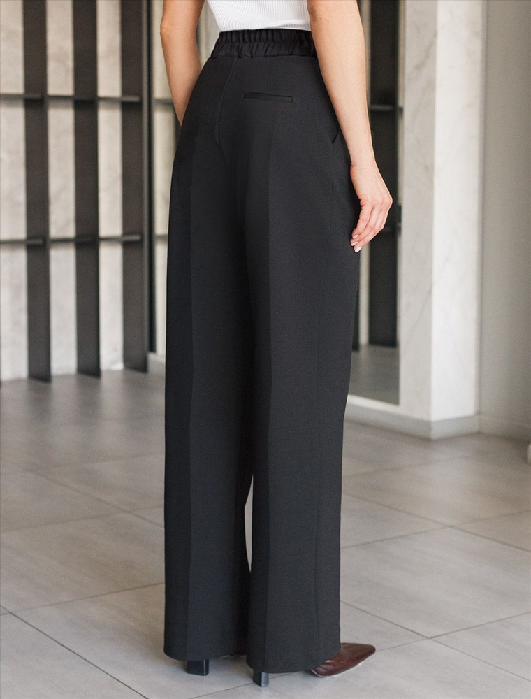 Плотность: 390 Г/м2 Прямые брюки выполнены из трикотажа джерси. Модель дополнена боковыми карманами и поясом на резинке сзади. Заутюженные стрелки визуально вытягивают силуэт. Изделие хорошо держит форму, отлично тянется и почти не мнется во время использования. Идеальный вариант в офис или в повседневный классический стиль. Комментарии к товару