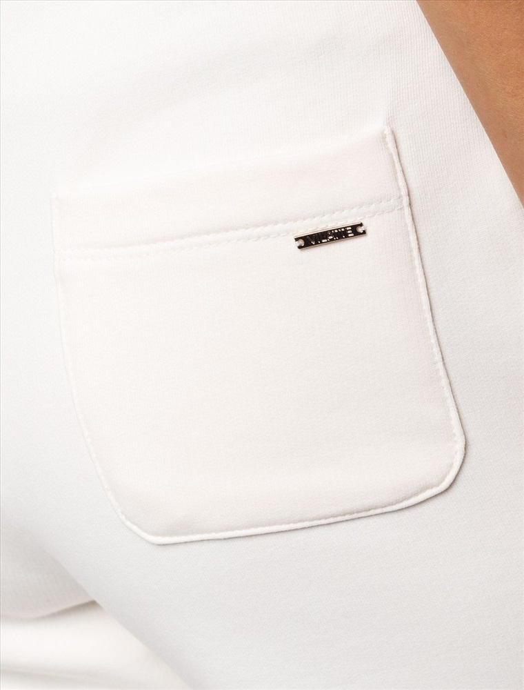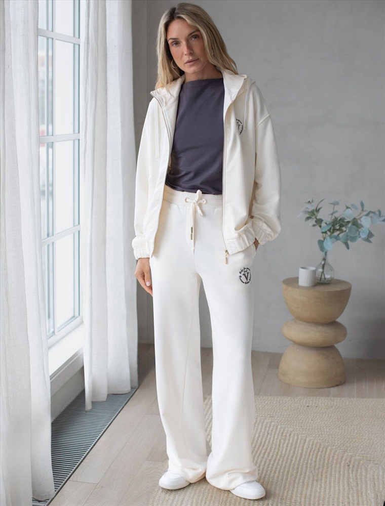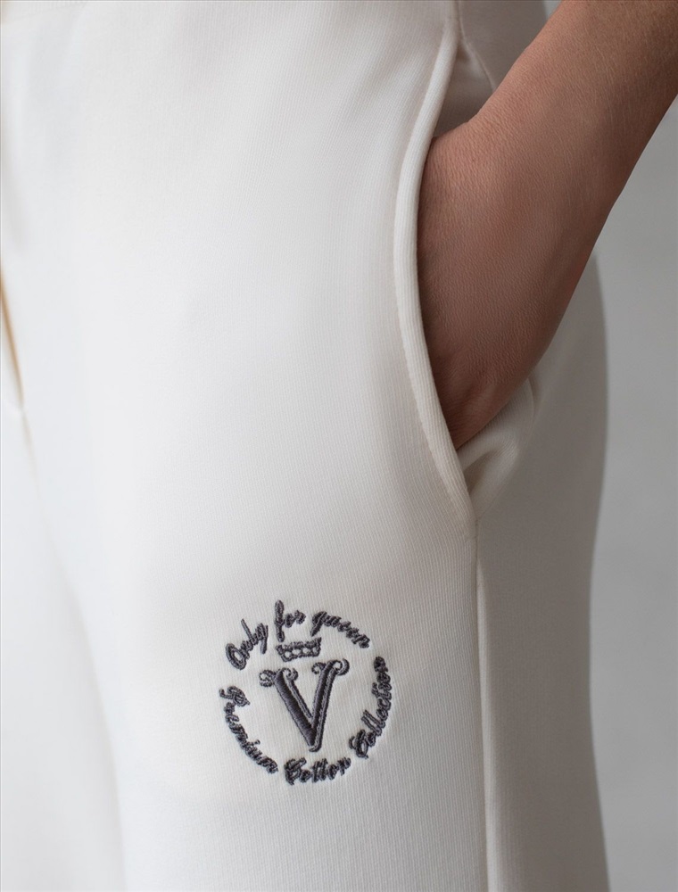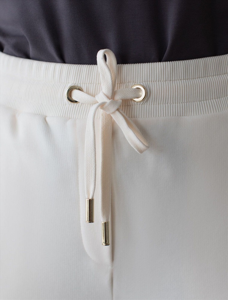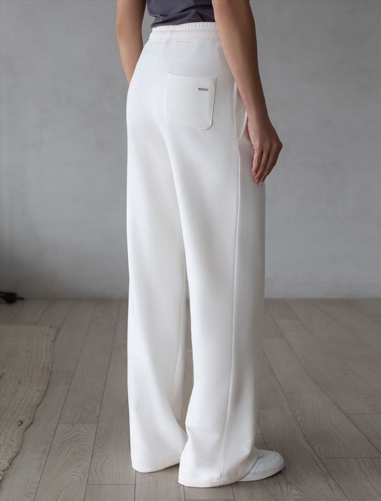 Брюки выполнены из премиального футера трехнитки без начеса. Модель дополнена эластичным поясом на резинке и хлопковым шнурком с золотистой фурнитурой. По бокам два кармана. Наличие эластана в составе гарантирует формоустойчивость и износостойкость изделия. Изделие сочетается в костюме с худи D49.054