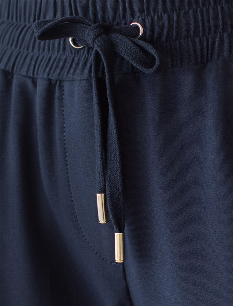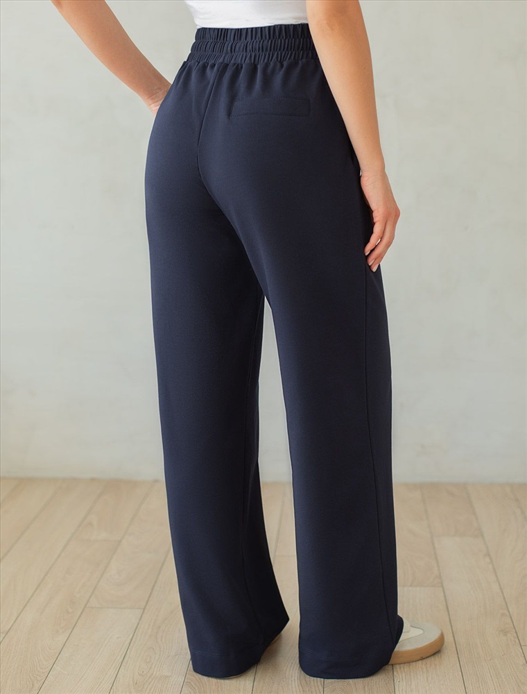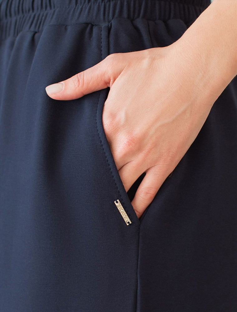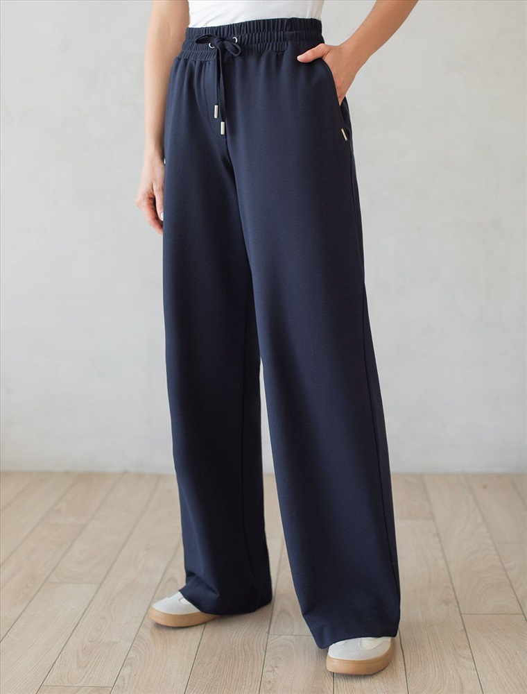 Плотность: 240 Г/м2 Параметры модели на первом фото: Рост 172, бюст 88, талия 64, бедра 88 Брюки выполнены из футера двухнитки с эластаном. Модель прямого кроя дополнена боковыми карманами и одним задним карманом. Пояс выполнен из эластичного трикотажа в рубчик. В пояс вставлен плоский хлопковый шнур в тон изделия с золотистыми наконечниками. Изделие дополнено металлическим логотипом бренда. Сочетается в костюме с жакетом D49.078, джемпером D49.079, D49.080 и футболкой D49.081 Комментарии к товару