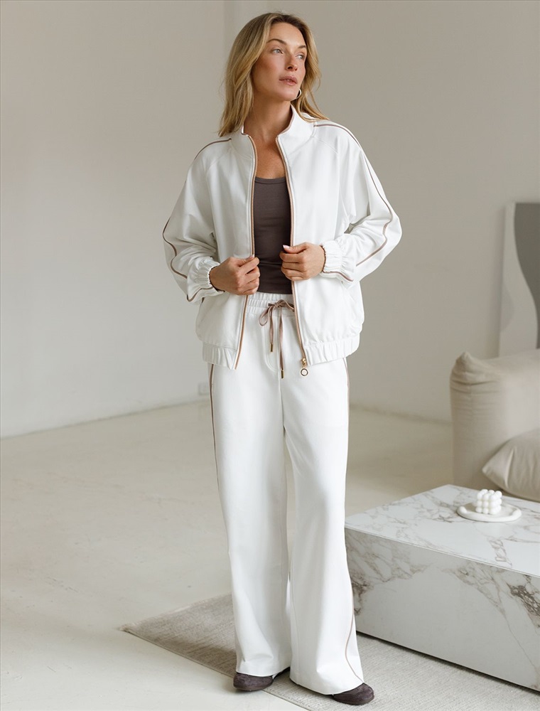 Плотность: 240 Г/м2 Параметры модели на первом фото: Рост 172, бюст 88, талия 64, бедра 88 Размер товара на первом фото: 42 Прямые брюки белого цвета выполнены из премиального футера двухнитки с эластаном плотностью 240 Г/м2. Повседневные брюки сочетают в себе комфорт и оригинальность. Брюки выполны из натурального хлопка, который обеспечивает мягкость и дышащие свойства ткани. Нежный материал дарит ощущение уюта в любое время года, а премиальное качество изготовления гарантирует долговечность и сохранение формы после множества стирок. Лампасы добавляют динамики и вытягивают силуэт. Удобный пояс на резинке регулируется хлопковым шнурком. Юлагодаря свободному прямому крою, брюки подойдут на любую фигуру, а так же большие размеры, включая 56. В этих спортивных брюках вы будете чувствовать себя уверенно, наслаждаясь каждым моментом дня. Рекомендуем сочетать с артикулами: D49.138, D49.086, D49.169, D49.161, D49.165 Комментарии к товару