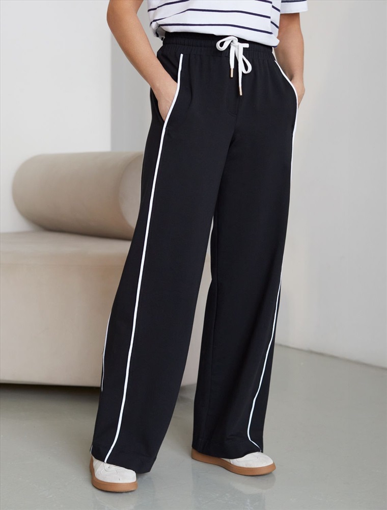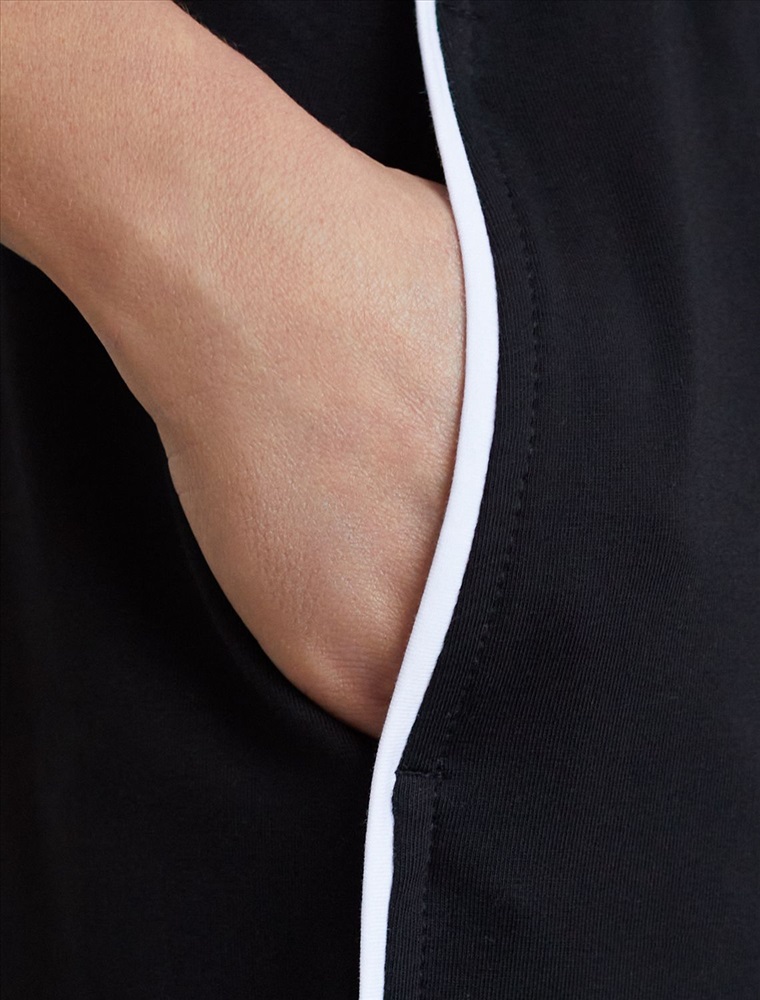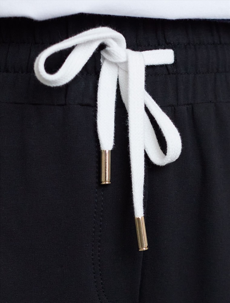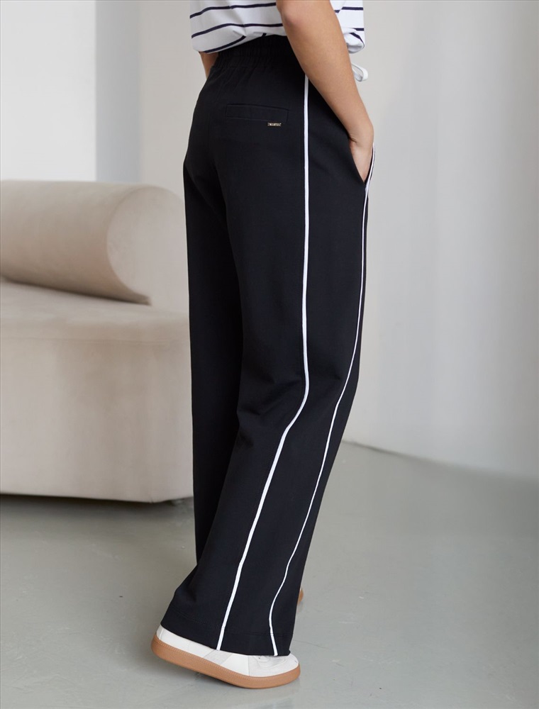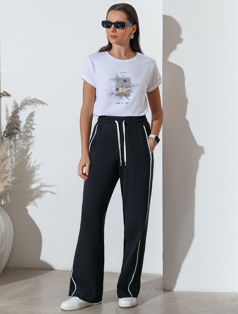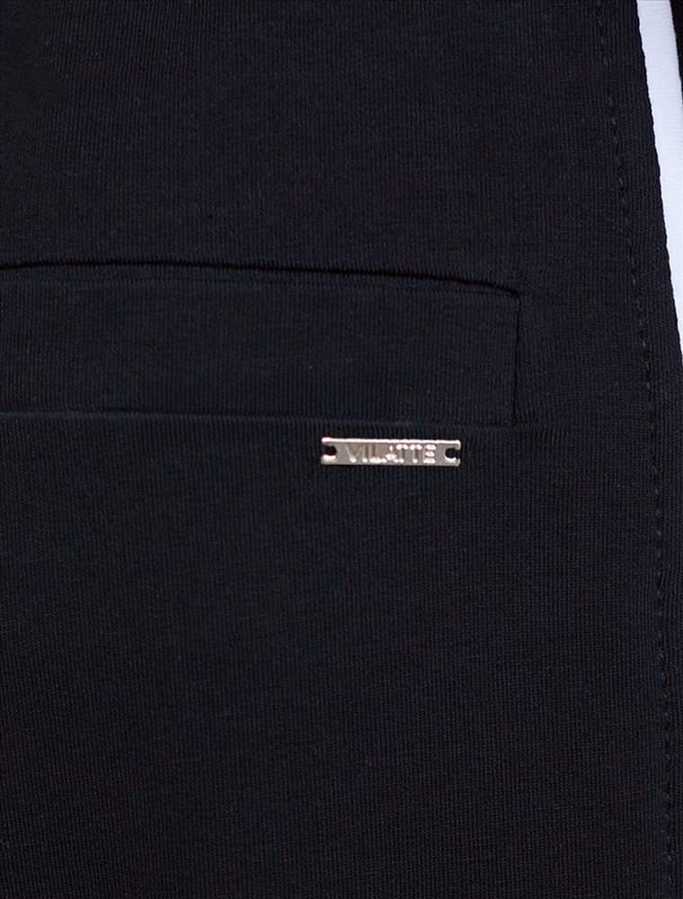 Прямые брюки черного цвета выполнены из премиального футера двухнитки с эластаном плотностью 240 Г/м2. Повседневные брюки сочетают в себе комфорт и оригинальность. Брюки выполны из натурального хлопка, который обеспечивает мягкость и дышащие свойства ткани. Нежный материал дарит ощущение уюта в любое время года, а премиальное качество изготовления гарантирует долговечность и сохранение формы после множества стирок. Лампасы добавляют динамики и вытягивают силуэт. Удобный пояс на резинке регулируется хлопковым шнурком. Юлагодаря свободному прямому крою, брюки подойдут на любую фигуру, а так же большие размеры, включая 56. В этих спортивных брюках вы будете чувствовать себя уверенно, наслаждаясь каждым моментом дня.