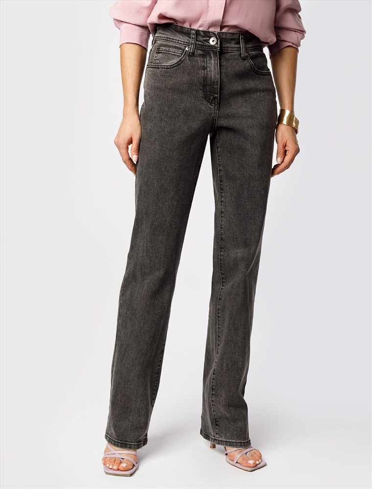 Плотность: 15.5 OZ Параметры модели на первом фото: Рост 172, бюст 88, талия 64, бедра 88 Прямые джинсы выполнены из эластичного денима. Удлиненная модель серого цвета с мягкой стиркой легко впишется в любой, даже строгий офисный образ с жакетом и блузкой. Комфортная посадка на талии подходит для любой фигуры, ткань хорошо тянется и не сковывает движений. На поясе сзади расположен нашивка из эко-кожи с логотипом бренда. Длина изделия позволяет выбрать к образу обувь на каблуке Комментарии к товару