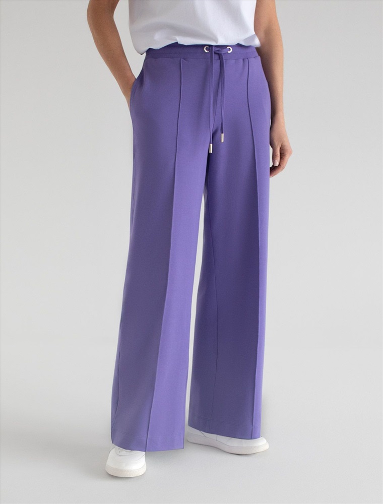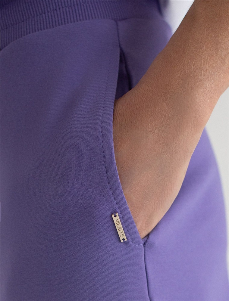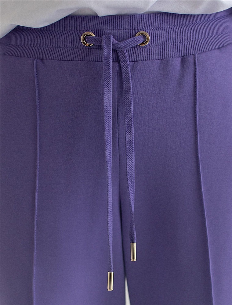 Плотность: 240 Г/м2 Брюки лавандового цвета прямого кроя выполнены из премиального футера-двухнитки. Лаконичный силуэт поддерживают застроченные стрелки, зрительно вытягивающие силуэт. Удобный пояс на резинке регулируется хлопковым шнурком с золотистой фурнитурой. Наличие эластана в составе изделия гарантирует комфорт и долговечность изделия. Эластичный материал хорошо пропускает воздух, позволяя телу дышать, и легко тянется, не ограничивая движения. Эти уютные брюки созданного для вашего комфорта. Нежный и стильный вариант подходит на любую фигуру, благодаря своей идеальной посадке. Свободный прямой крой обеспечивает свободу движений и максимальное удобство в любых ситуациях, поэтому они подойдут и на большие размеры, включая 56 размер. Стильный расклешенный крой добавляет изюминку в ваш образ. Эти брюки универсальны и могут стать отличным вариантом, как для занятий, так и для повседневной носки. Они легко вписываются в повседневный образ, благодаря универсальности и элегантности. Достоинства фигуры подчеркиваются, а силуэт визуально вытягивается за счет кроя палаццо и стрелок. В этих спортивных брюках вы будете чувствовать себя комфортно и уверенно, наслаждаясь каждым моментом дня. Рекомендуем сочетать с артикулами: D49.160, D49.167, D49.168 Комментарии к товару