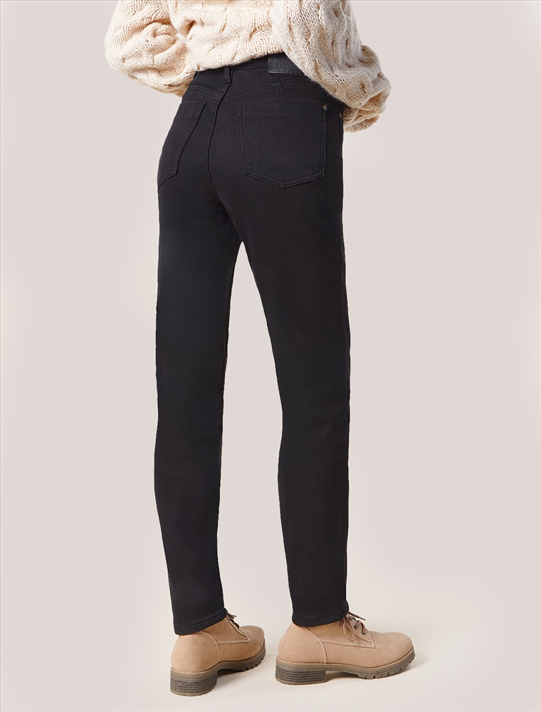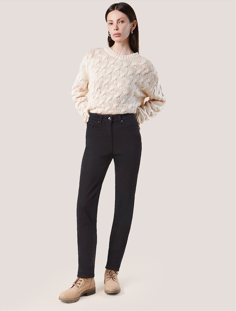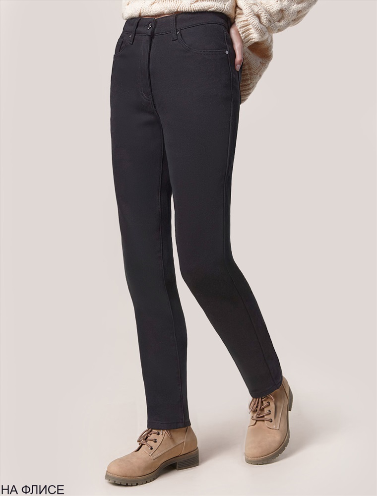 Параметры модели на первом фото: Рост 172, бюст 88, талия 64, бедра 88 Черные прямые джинсы выполнены из эластичного денима. Внутренняя сторона изделия утепленная мягким флисом обеспечит тепло, комфорт и защиту от холода. Модель стандартной длины с классической посадкой на талии визуально вытягивает силуэт. Лучший вариант для зимнего периода, когда хочется выдержать стиль и практичность.