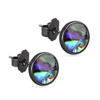 Изготовлено из ювелирного сплава на основе латуни с гальваническим покрытием черным родием. Изделие украшает гелиотис. Застежка-гвоздики. Диаметр 10мм.