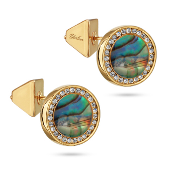 Изготовлено из ювелирного сплава на основе латуни с гальваническим покрытием золотом. Изделие украшает гелиотис. Диаметр серьги 1.5см. Застежка-гвоздики.