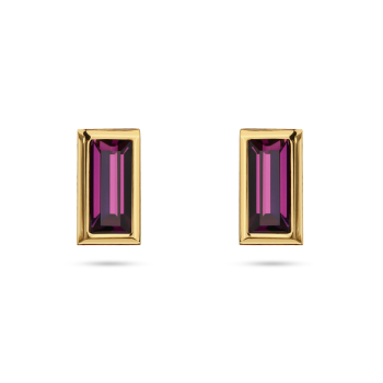 Изготовлено из ювелирного сплава на основе латуни с гальваническим покрытием золотом. Изделие украшают кристаллы SW цвета темный аметист. Размер серьги 9х5мм. Застежка-гвоздики.