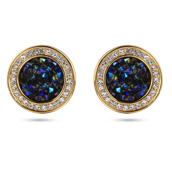Изготовлено из ювелирного сплава на основе латуни с гальваническим покрытием золотом. Изделие украшают кристаллы SW синего цвета. Диаметр серьги 1, 5см. Застежка-гвоздики.