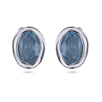 Изготовлено из ювелирного сплава на основе латуни с гальваническим покрытием родием. Изделие украшают кристаллы SW цвета байкальский лед. Размер серьги 1.7х1.4см. Застежка-гвоздики.