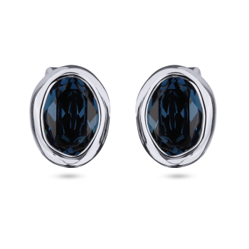 Изготовлено из ювелирного сплава на основе латуни с гальваническим покрытием родием. Изделие украшают кристаллы SW темно-синего цвета. Размер серьги 1.7х1.4см. Застежка-гвоздики.