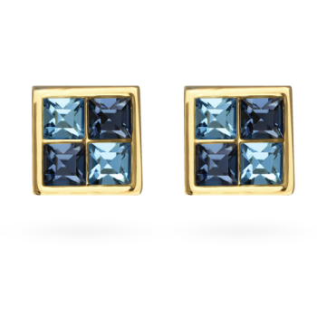 Пусеты Квадро (кристаллы SW джинс, аквамарин; покрытие золото), Есть комплект