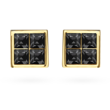 Пусеты Квадро (кристаллы SW темно-серые; покрытие золото), Есть комплект