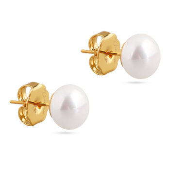 Изготовлено из ювелирного сплава на основе латуни с гальваническим покрытием золотом. Изделие украшает майорский жемчуг белого цвета диаметром 10мм. Застёжка-гвоздики.