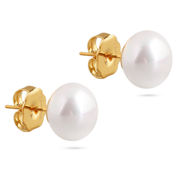 Изготовлено из ювелирного сплава на основе латуни с гальваническим покрытием золотом. Изделие украшает майорский жемчуг белого цвета диаметром 12мм. Застёжка-гвоздики.