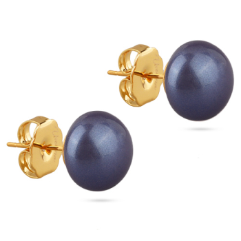 Изготовлено из ювелирного сплава на основе латуни с гальваническим покрытием золотом. Изделие украшает майорский жемчуг черничного цвета диаметром 12мм. Застёжка-гвоздики.