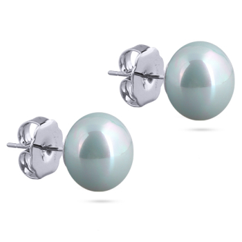 Изготовлено из ювелирного сплава на основе латуни с гальваническим покрытием родием. Изделие украшает майорский жемчуг голубого цвета диаметром 12мм. Застёжка-гвоздики.