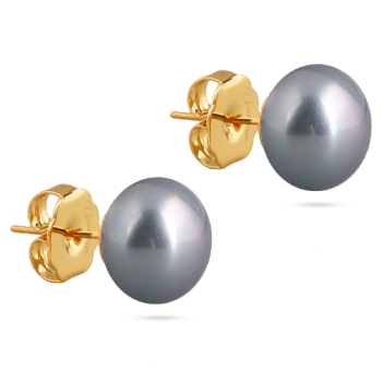 Изготовлено из ювелирного сплава на основе латуни с гальваническим покрытием золотом. Изделие украшает майорский жемчуг серо-голубого цвета диаметром 12мм. Застёжка-гвоздики.